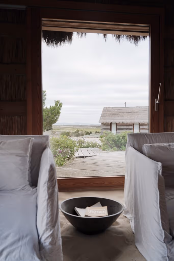 Set on the Alentejo coastline, just one hour south of Lisbon, this barefoot hideaway is not for every traveler. It’s the kind of place that attracts the adventurous kind. It’s an idyllic remote setting where thatched walls and sandy floors coexist with a natural, curated design mastered by the Aires Mateus studio.