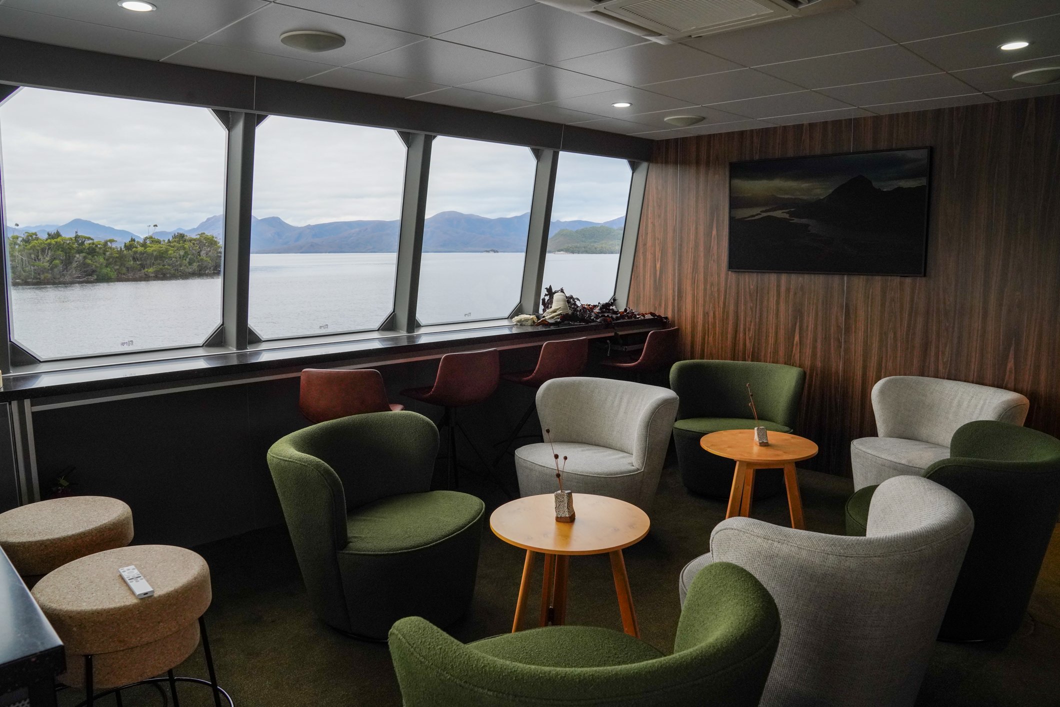 Everything was geared to making passengers comfortable and immersed in Tasmania’s world-class nature. From the spacious outdoor sightseeing decks, perfect for photography, morning coffee, and wildlife spotting, to the maximized window space, with knee-to-ceiling windows all around the catamaran, the opportunity to be captivated by our surroundings was constant.