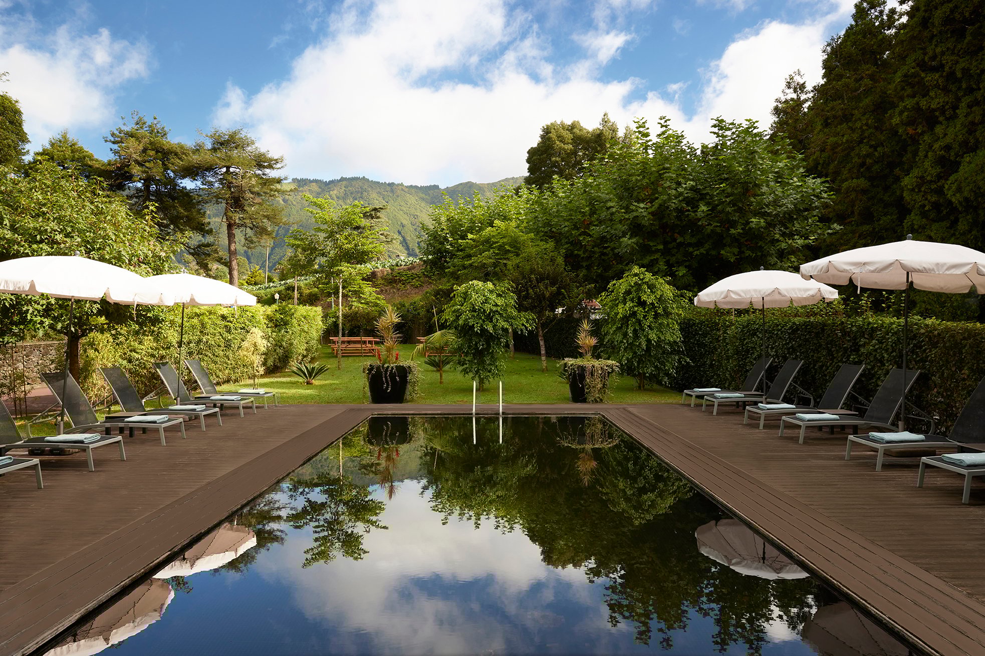 The hotel sits within easy walking distance of Furnas center at the end of a promenade lined with hydrangeas and azaleas.