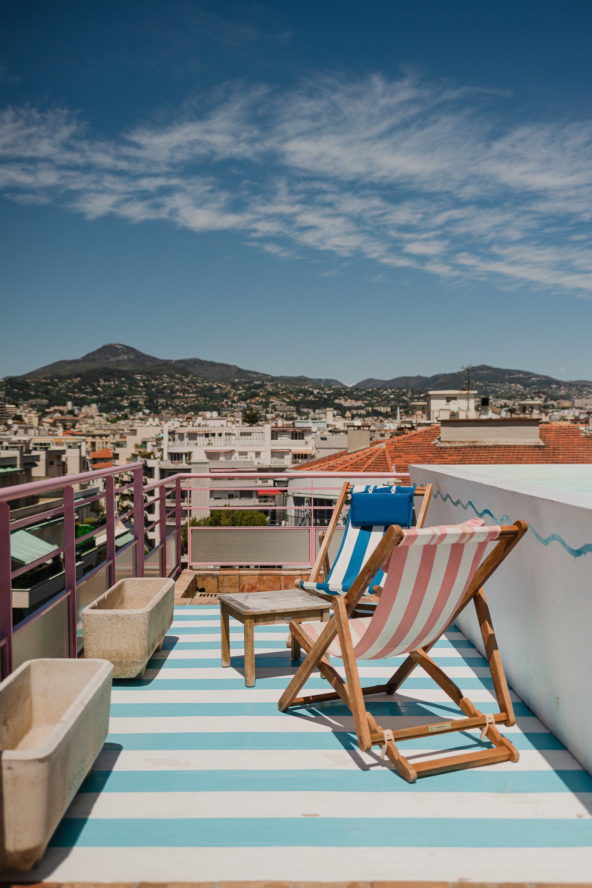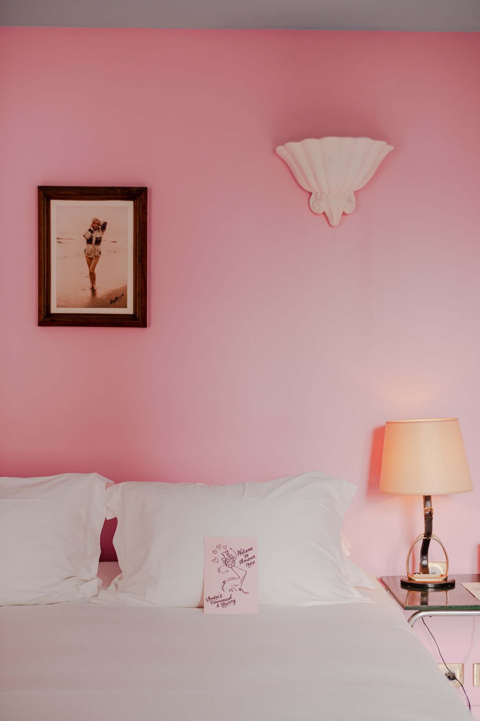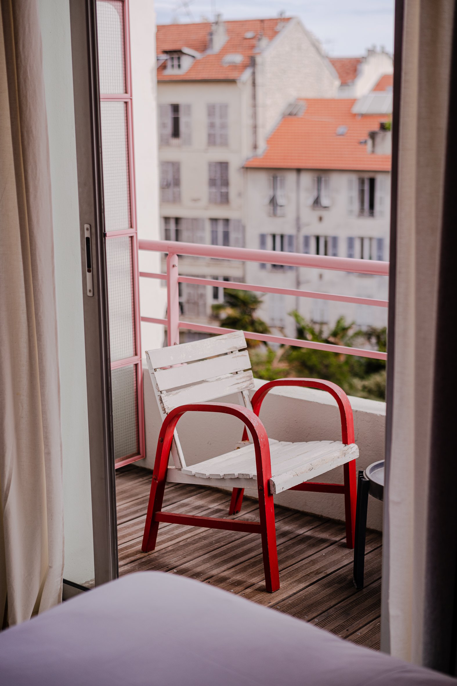 Heading toward the rooms, past the pink and teal striped hallway, I took the lift to level two and unlocked Room 23, my weekend respite. At first glance, I thought: “If I lived in Nice, I’d want my studio to match this aesthetic.”