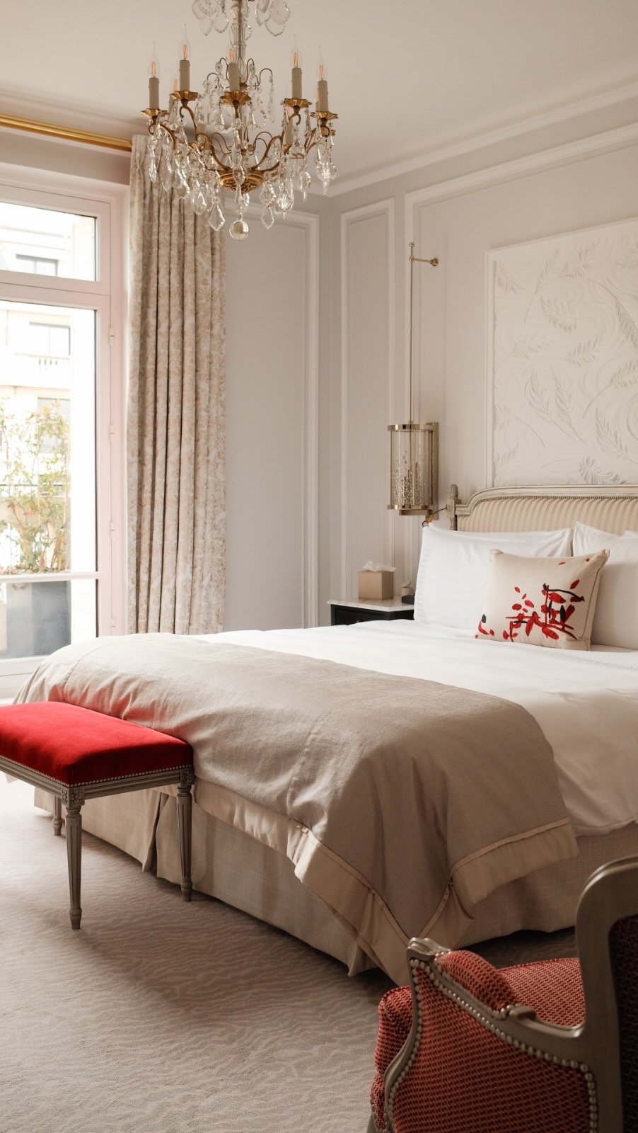 The property—yes, the one mentioned in Taylor Swift’s “Elizabeth Taylor”—boasts a stunning exterior and equally gorgeous interior with beauty and story in every corner. The hotel is characterized by a mix of classic Parisian and Art Deco style against a backdrop of the hotel’s trademark red touches.