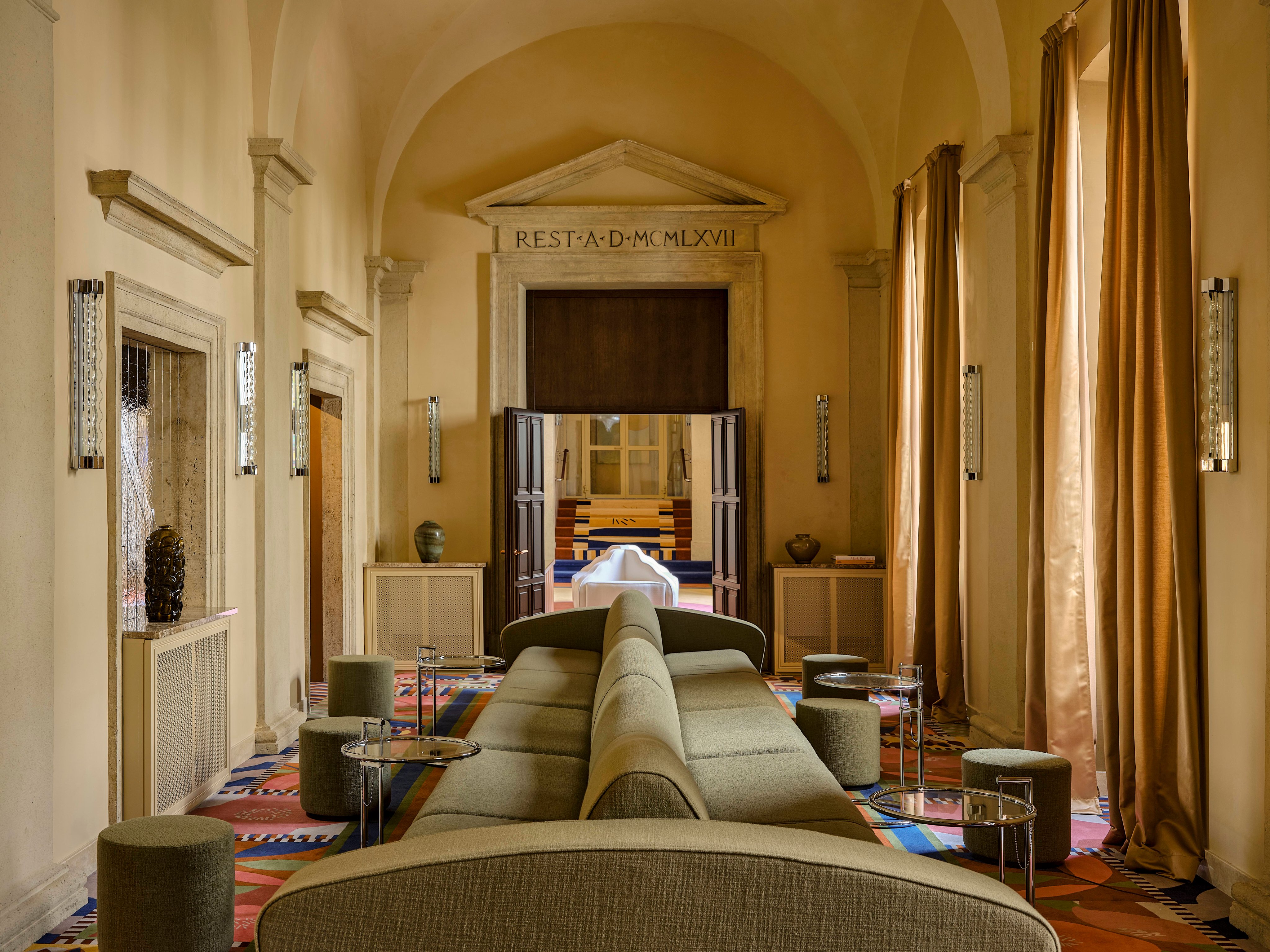 Our Favorite Thing: The dreamy calm in the Terrace Suite; the relax in the former Aula Magna—now a lounge—admiring its frescoes; Dylan Tripp’s – well-known in Roma floral designer - motifs everywhere; the staff uniforms by Claire Crowley with a modern‑British twist; and the guest experiences, including a palace tour led by Angelica Federici and a restoration workshop with the Storti‑Merlini Studio.