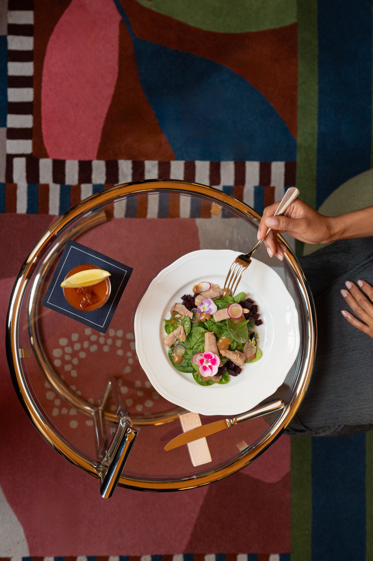 At Ristorante Tramae, chef Marco Coppola brings a Mediterranean spirit with Sorrento influences, weaving in a few Roman classics. Ingredients are sourced from local producers and from Solaria, the family’s own farm, reflecting its seaside heritage. Before lunch or dinner—especially on mild days, when the Garden Bar is irresistible—stop by the Bar della Musa, located in the Sala delle Grottesche. Here, a Martini drink feels almost mandatory, enjoyed beneath a triptych inspired by the Gardens of Ninfa, painted by young artist Delfina Scarpa.