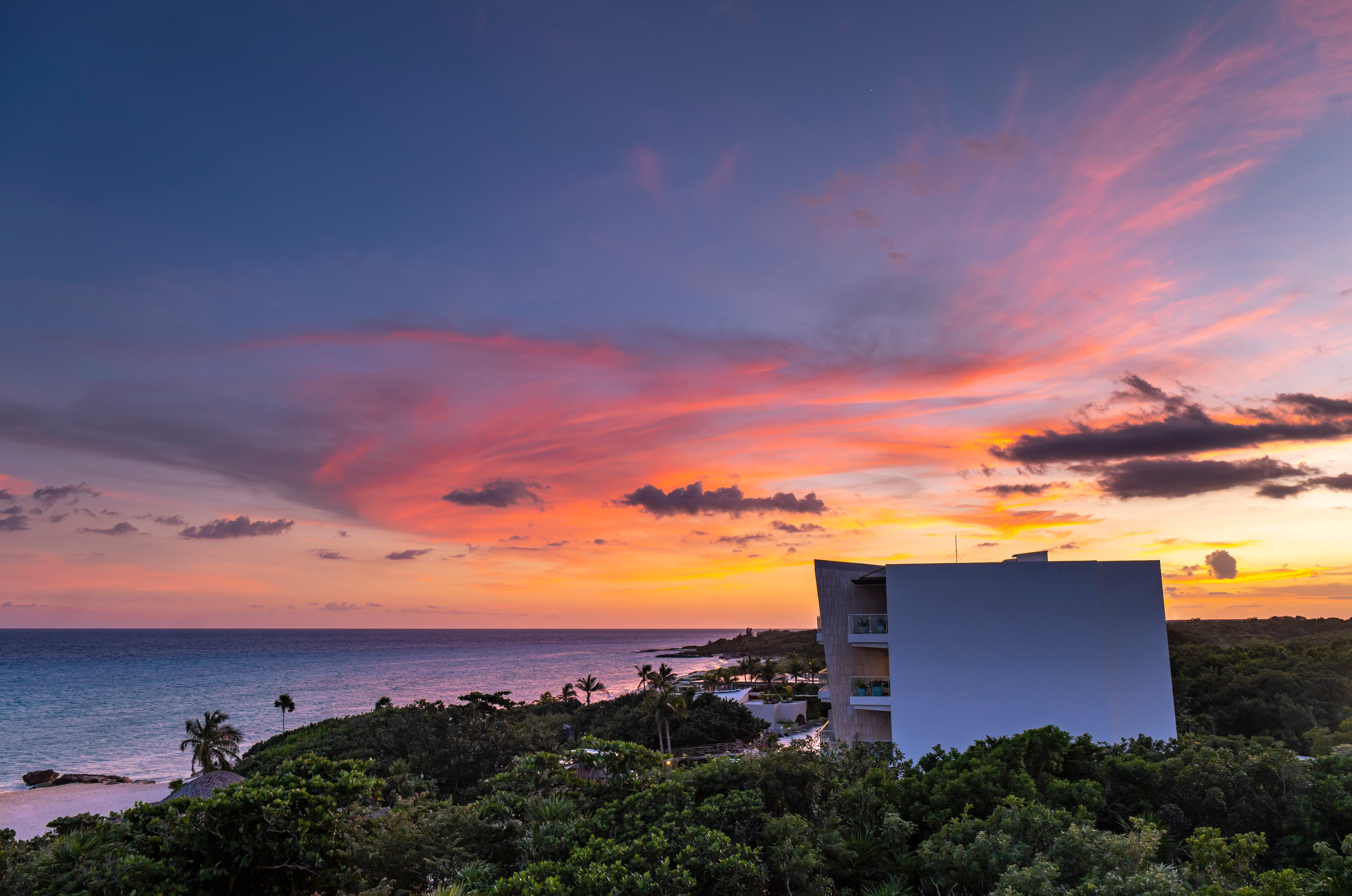 Tucked between lush jungle terrain and white sandy beaches, Palmaïa - The House of AïA is a wellness mecca in the middle of Playa Del Carmen. Though it is home to 234 suites, its intimate and calm atmosphere combined with its hands-on service create a boutique ambiance that mirrors its own mission for connection. The all-inclusive format extends from dining, which is primarily vegan, to daily wellness classes like breathwork, yoga, sound baths, and more. The hotel’s crown jewel, however, is none other than the outdoor Atlantis Spa, which features swimmable cenotes, a traditional temazcal and jungle-view treatment rooms.
