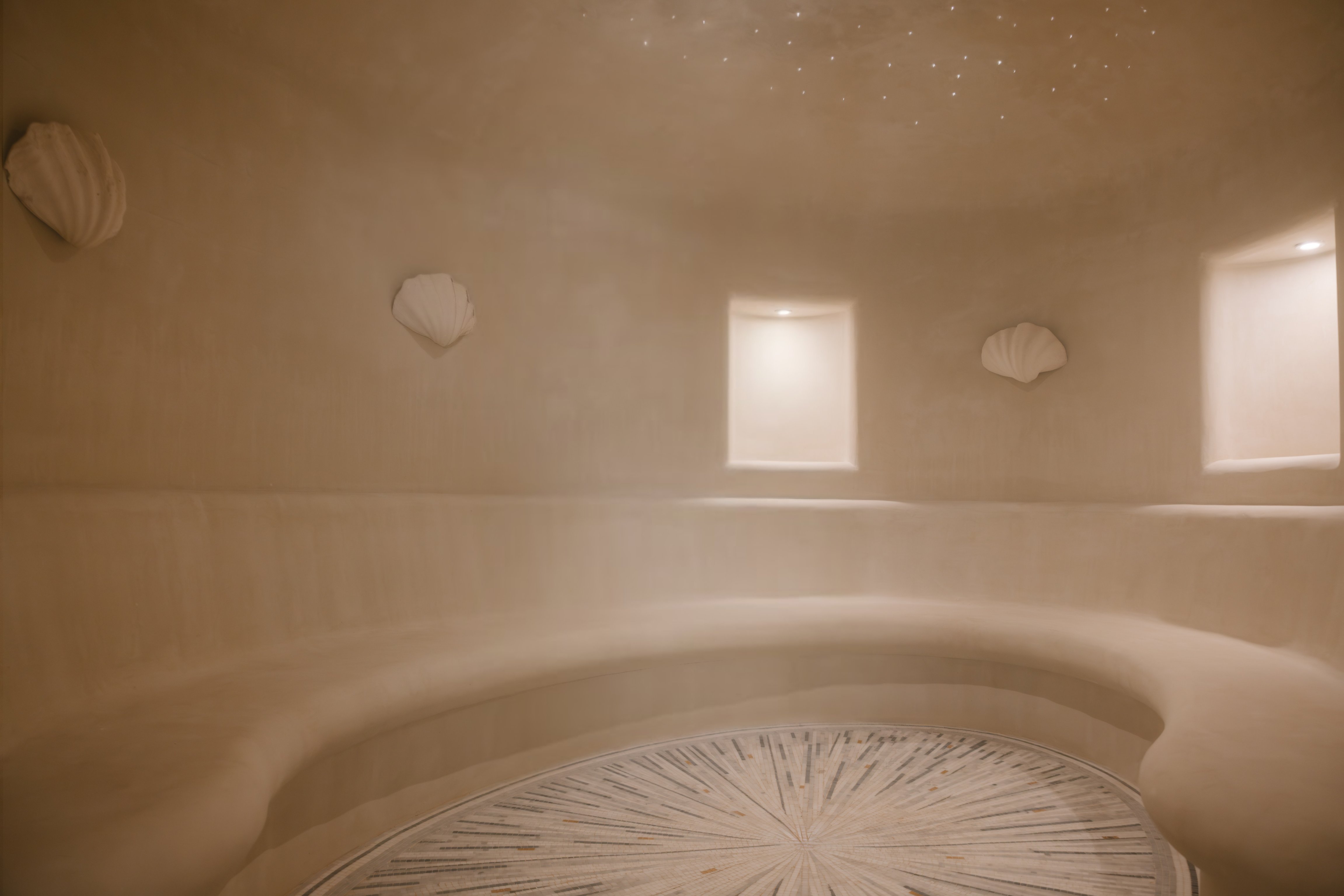 Golden Sand (90 min, €400): A full-body ritual performed on a heated quartz table, designed to melt tension and lull you into complete stillness