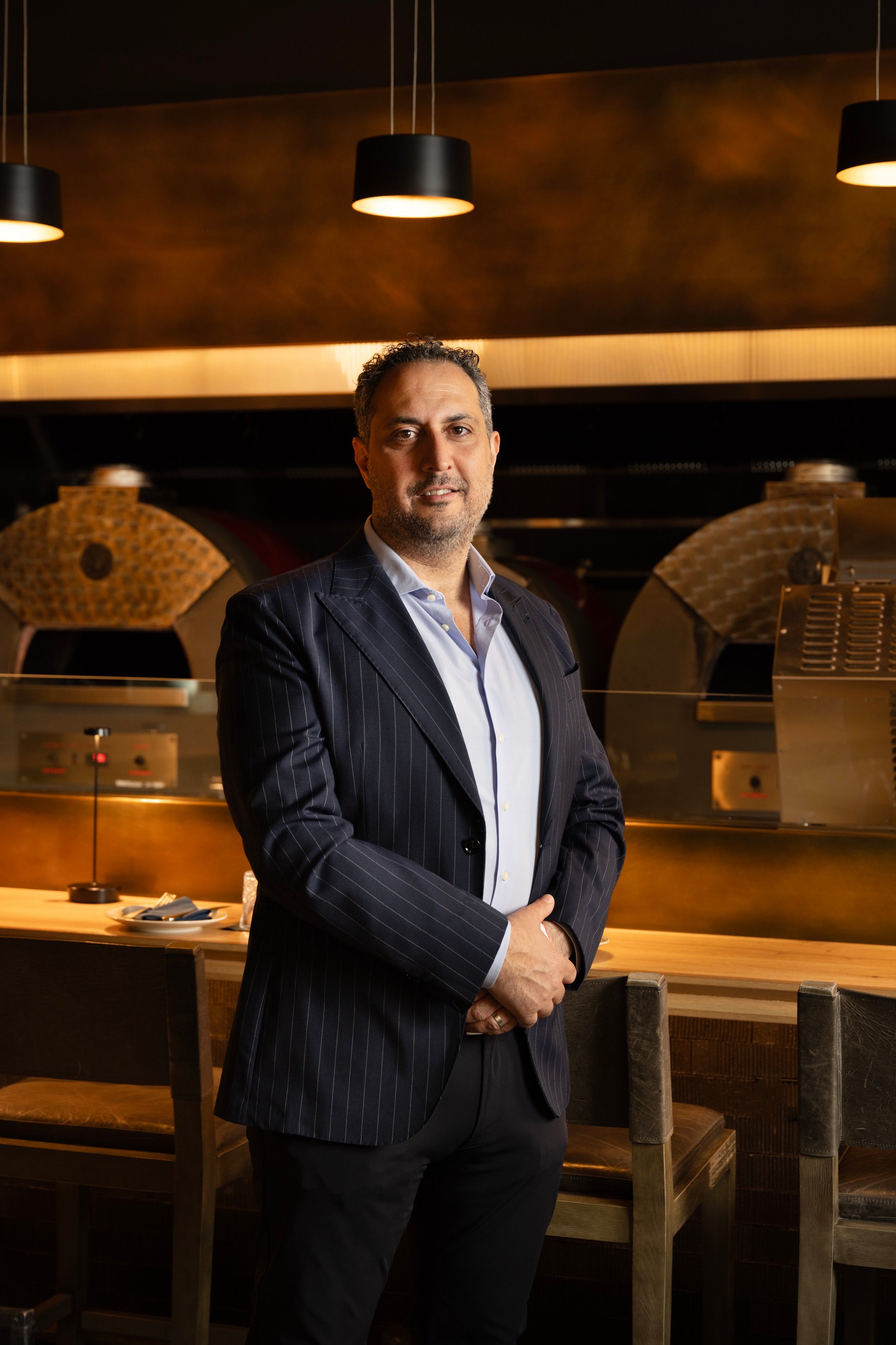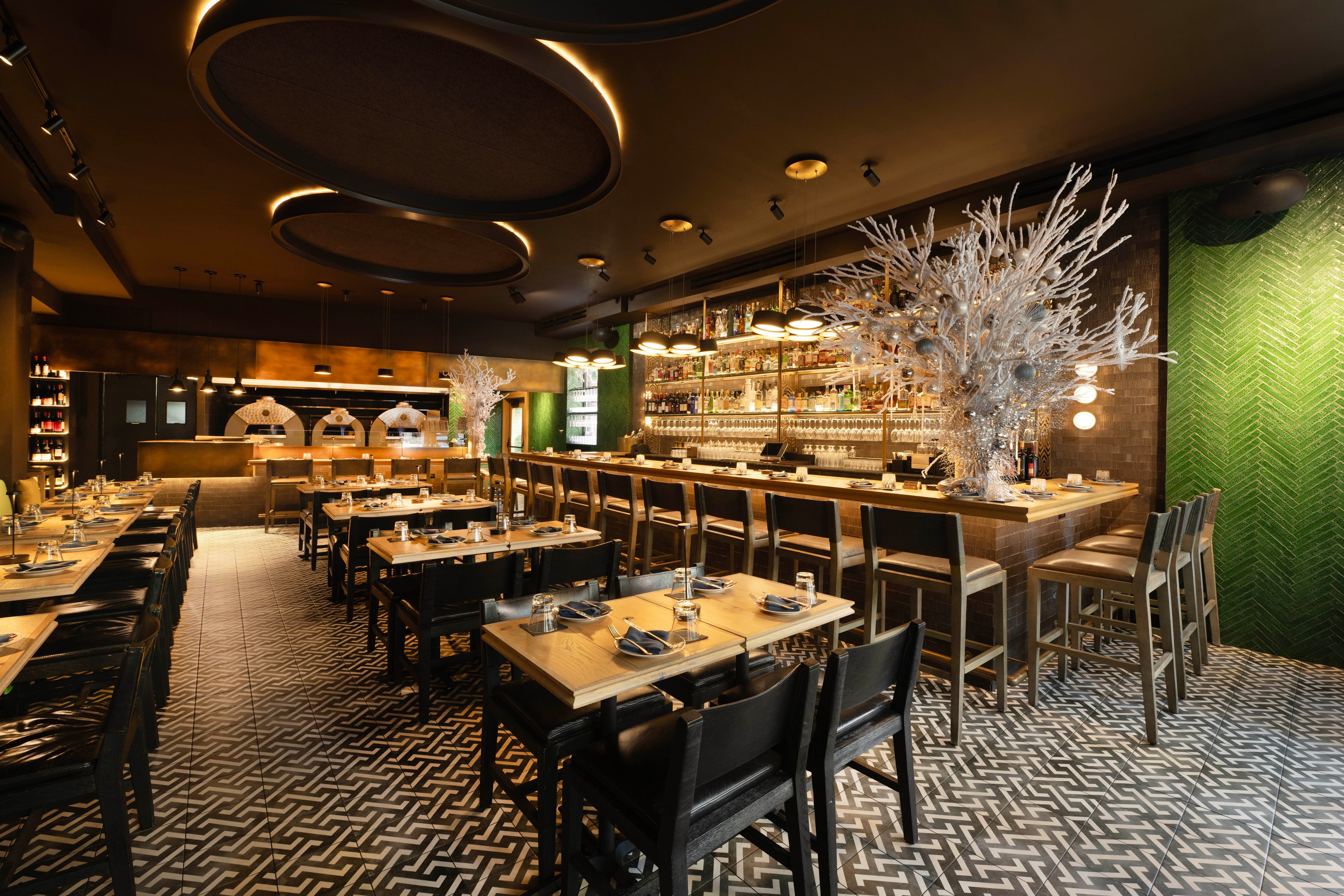 Owner and chef Tarik Fallous greeted me at the door and, in minutes, transported me far from Manhattan. This Midtown East outpost—his flagship, following the original East Village location that opened in 2014—is warm, glamorous, and theatrical in all the right ways. Bronze accents glow, and luxurious fabrics—green- and blue-hued leather banquettes, decorative pillows, and emerald-and-chocolate-toned walls—create a setting that invites lingering. The rooms hum with energy, and the bread ovens anchor the space like a hearth.