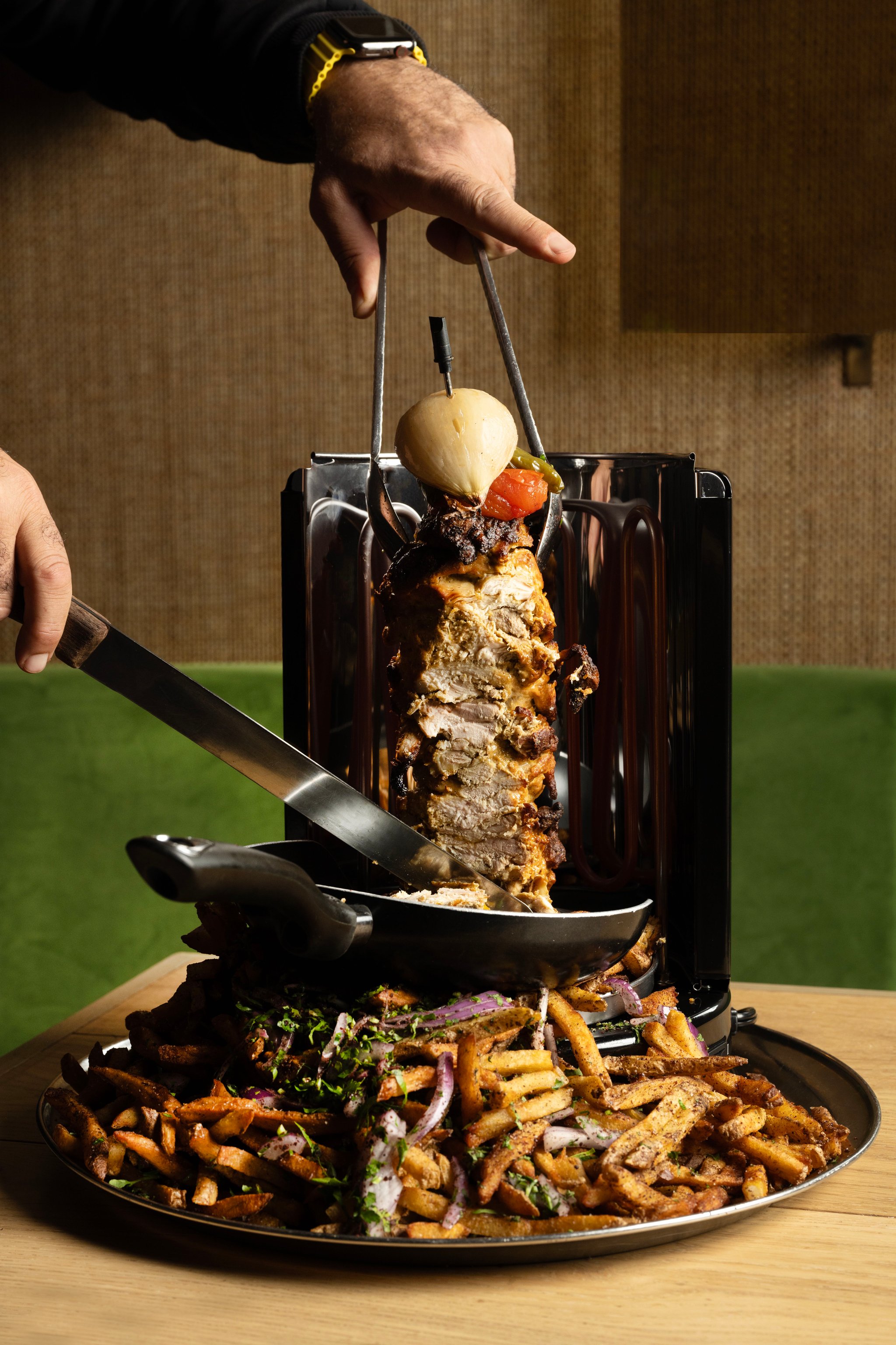 If you want drama, order the tableside shawarma—a towering, off-menu showstopper that’s roasted and carved right at the table.