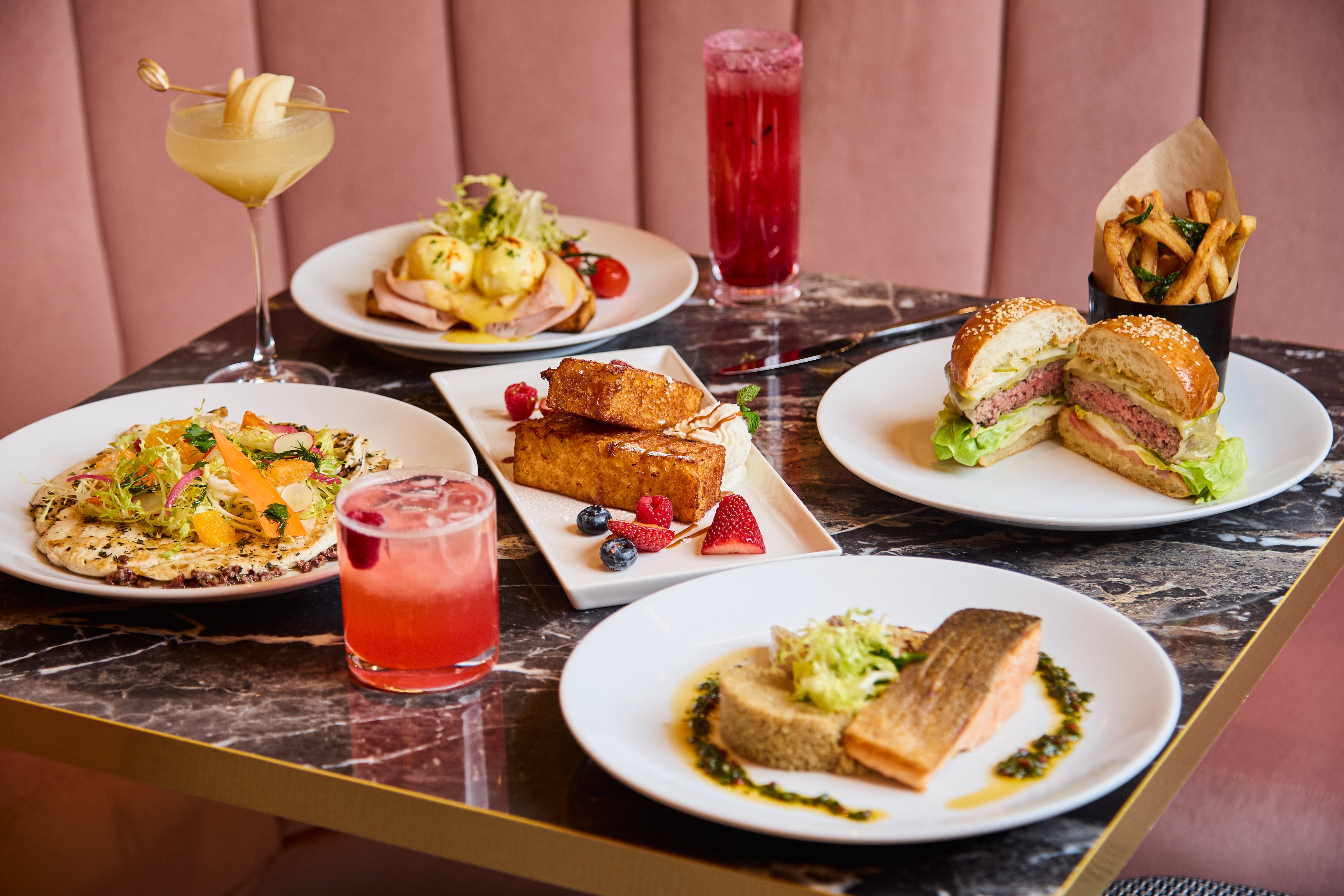 In the café, Executive Chef Mat Bednarczyk–in collaboration with Corporate Executive Chef Sébastien Monceaux–delivers breakfast through lunch with French clarity and American ease. Expect buckwheat blinis crowned with smoked salmon and trout roe, a textbook-perfect croque monsieur, and elevated comforts like a lobster roll on brioche or a Gruyère-topped FAUCHON burger.