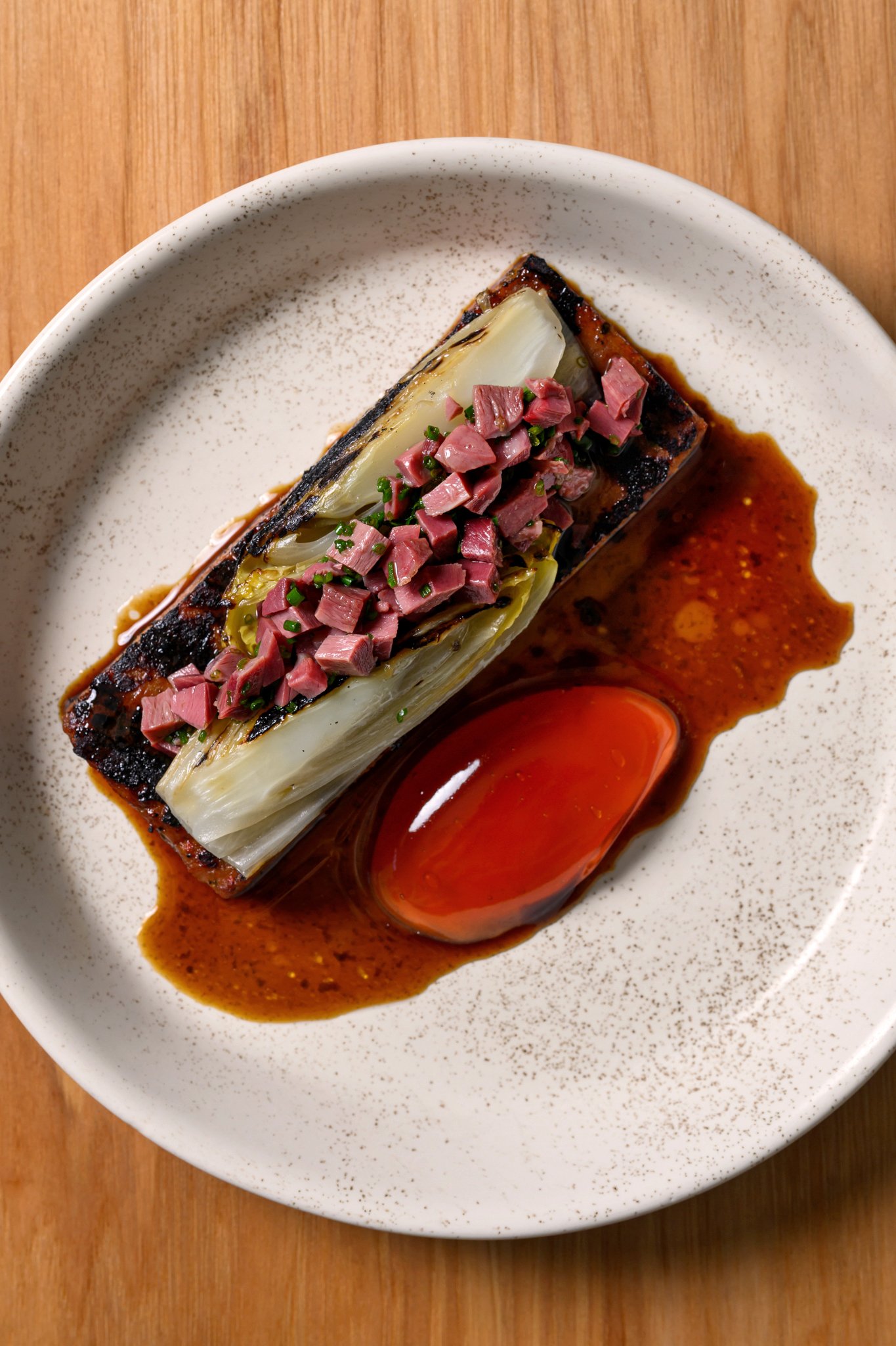 Our Favorite Thing on the Menu: A crispy Chongqing fried chicken speckled with chili oil is the perfect combo of crunch and tender meat. The charred cabbage with soy sauce and vinegar is a seared tangy bite worth taking.