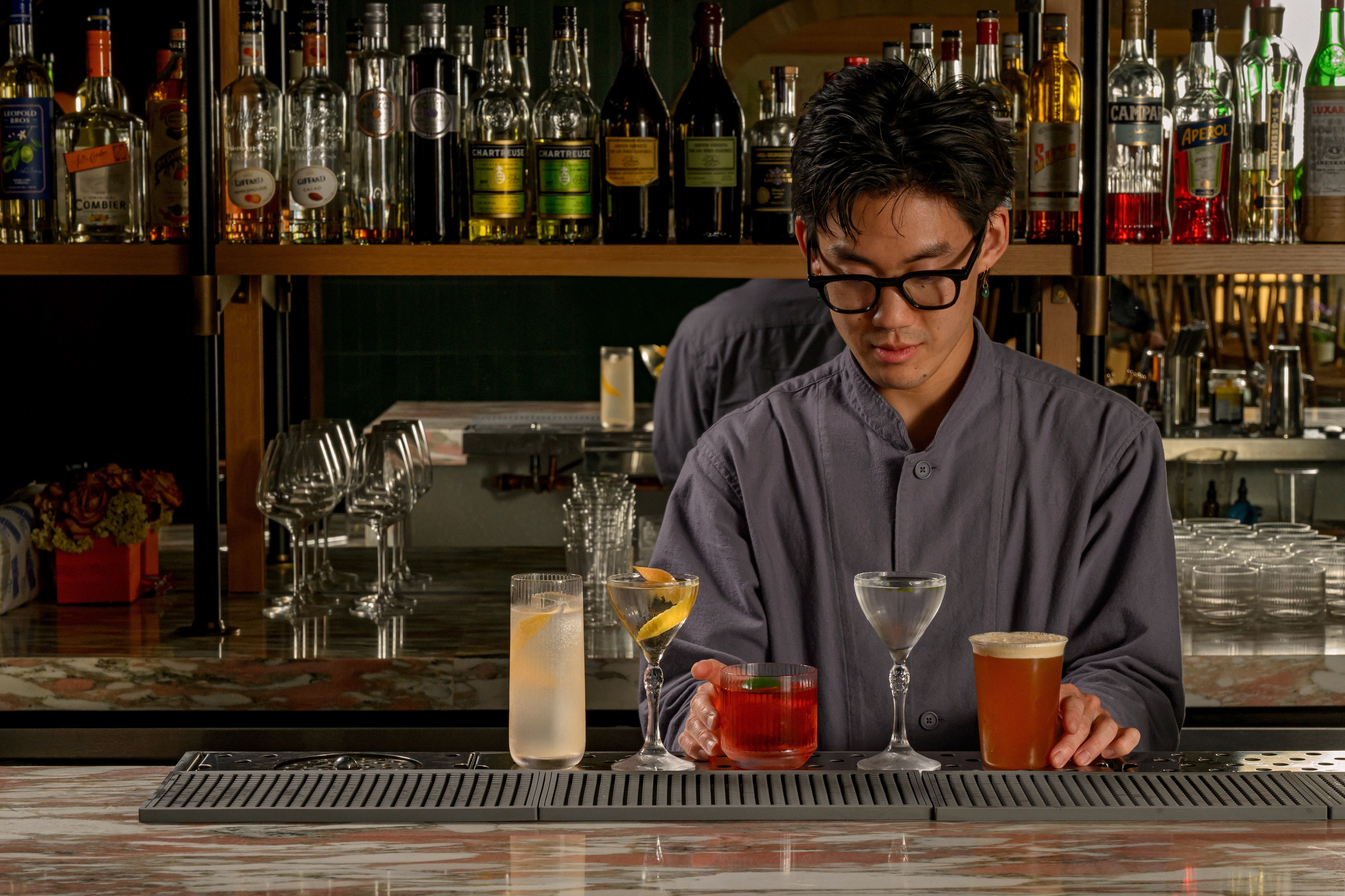 The bar program, led by Kenzo Han, is stellar. Szechuan peppercorns, lamb fat, celery oil and fermented rice are mixed with classic spirits to create inventive cocktails. The White Flower Negroni is made with a botanical forward Vietnamese gin from Song Cai Distillery has notes of orange peel and pink peppercorn that gets rounded out with the honeyed flavor of Lillet Blanc. A Sesame Old Fashioned pulls out all the stops of its classic smoky flavor, elevated by toasted flavors of muchiga, a Japanese tea made from roasted barley grains. Zero-proof cocktails at Firstborn are thoughtful and diverse, with standouts that include a nutty, creamy, and tart Hojicha Orange Milk Punch.