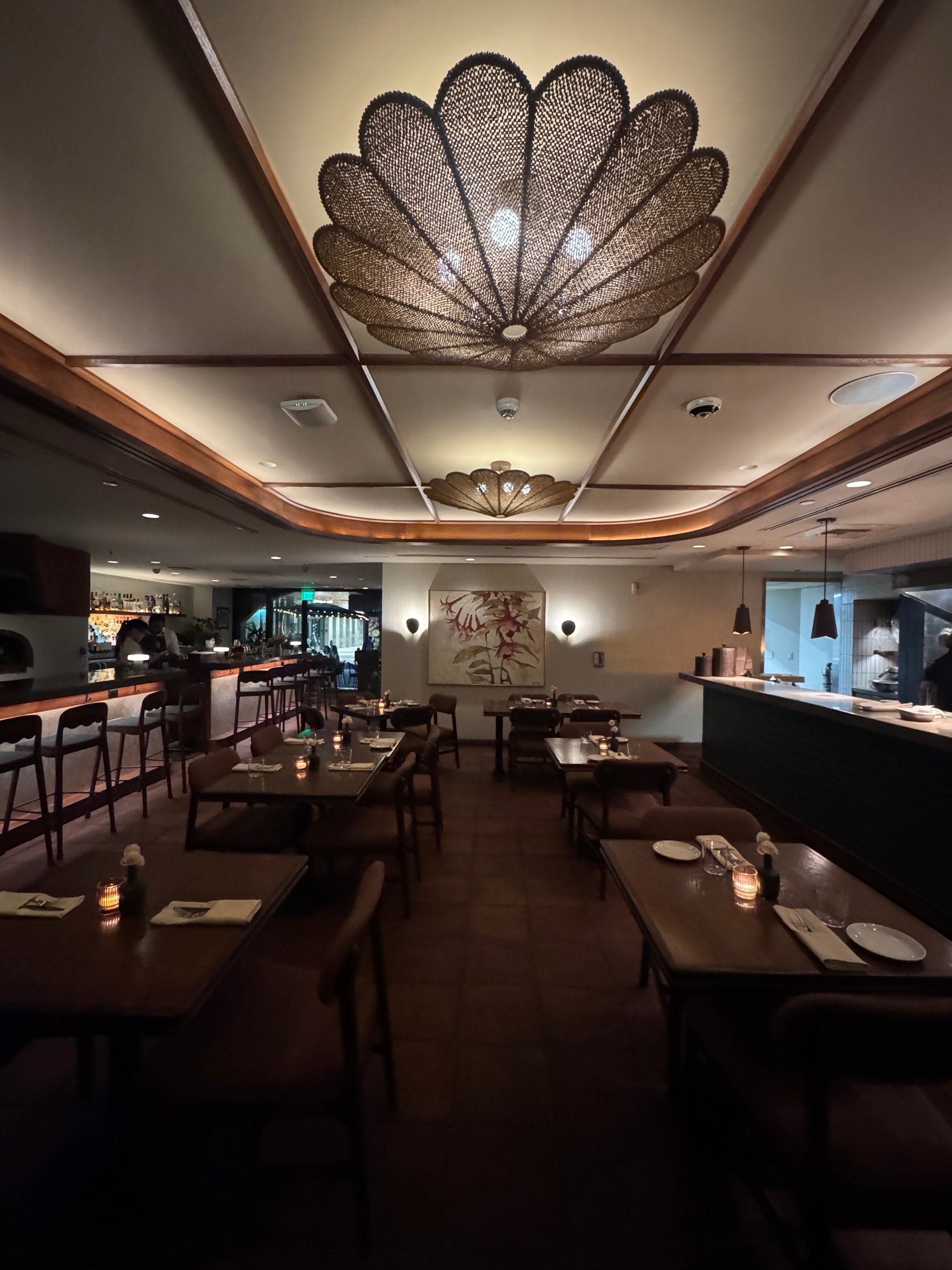 The open kitchen is in the main dining area, showcasing the wood-fired grill that Mayfair Grill is known for. A cappuccino machine in the corner reminds guests of the restaurant’s Sunday brunch, the only day of the week they’re open before 5pm. I opted to sit in Mayfair’s other outdoor space, the hotel’s lush open-roof atrium. Between the fountains, the jungle-esque ambiance, and ability to see the stars and planets (I spotted Jupiter), I forgot I was in Miami.