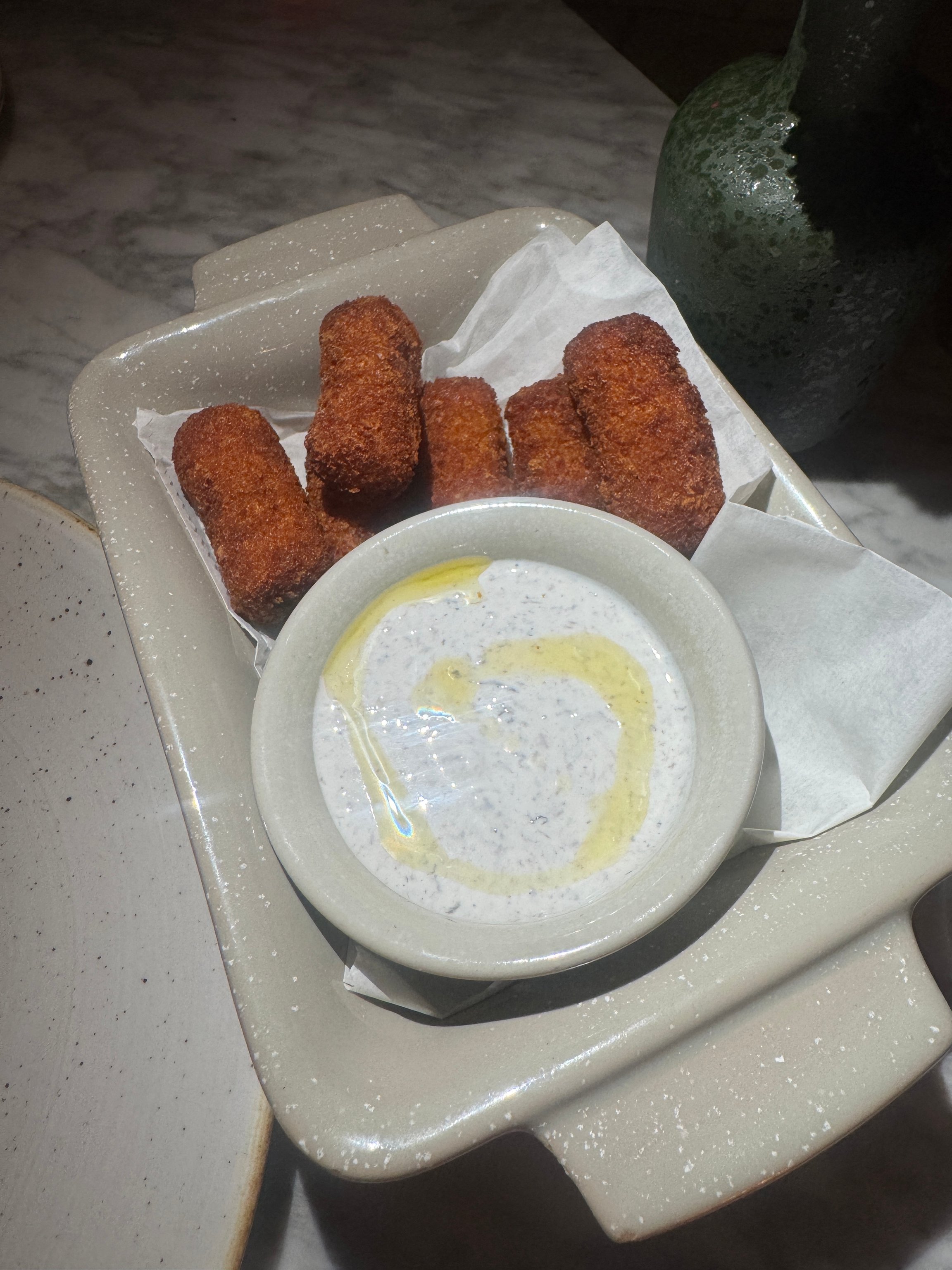 I started with the black truffle and potato croquetas with crème fraîche. With so much Cuban influence in Miami, croquetas are common menu items, but this one had a twist. They were tiny, the size of half of a finger, crispy on the outside, and creamy on the inside. I enjoyed dipping them in the crème fraîche. I quickly devoured them in less than five minutes.