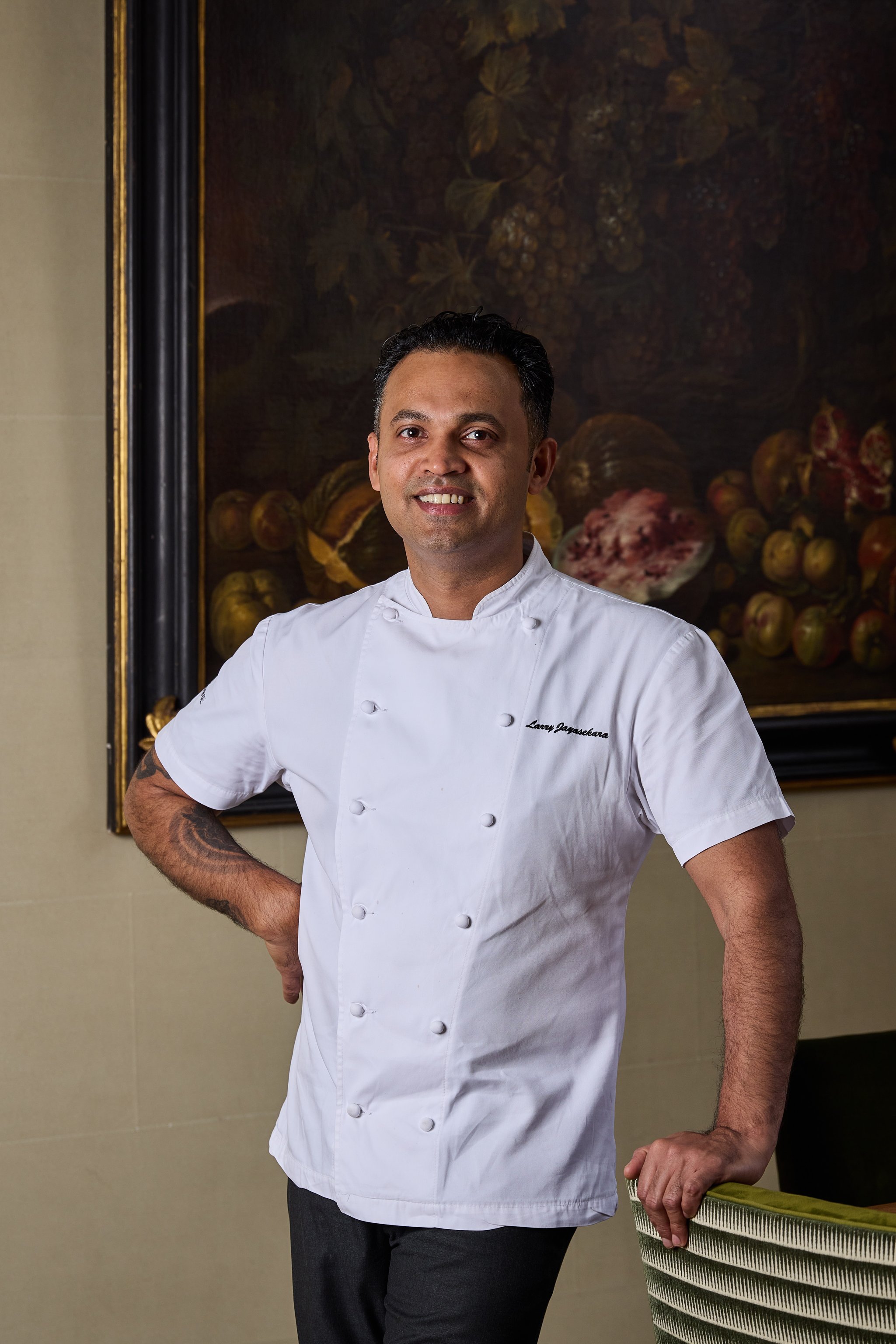 Chef Larry Jayasekara has cooked in many of London's top kitchens, working under chefs like Marcus Wareing, Gordon Ramsay, Alain Roux and Michel Bras. Now, he finally has a restaurant all his own, The Cocochine, housed in a glamorous four-story townhouse with Picasso and Matisse paintings gracing the walls. The 28-seat main dining room is on the ground floor, followed by a seven-seat chef's counter overlooking the open kitchen one floor above. On the top floor is an exclusive private dining room with a coffered ceiling and original Sarrasine-styled fireplace. It's a comfortably elegant setting for a dinner party for up to 16 guests, with soft leather sofas and a generous oak dining room table.