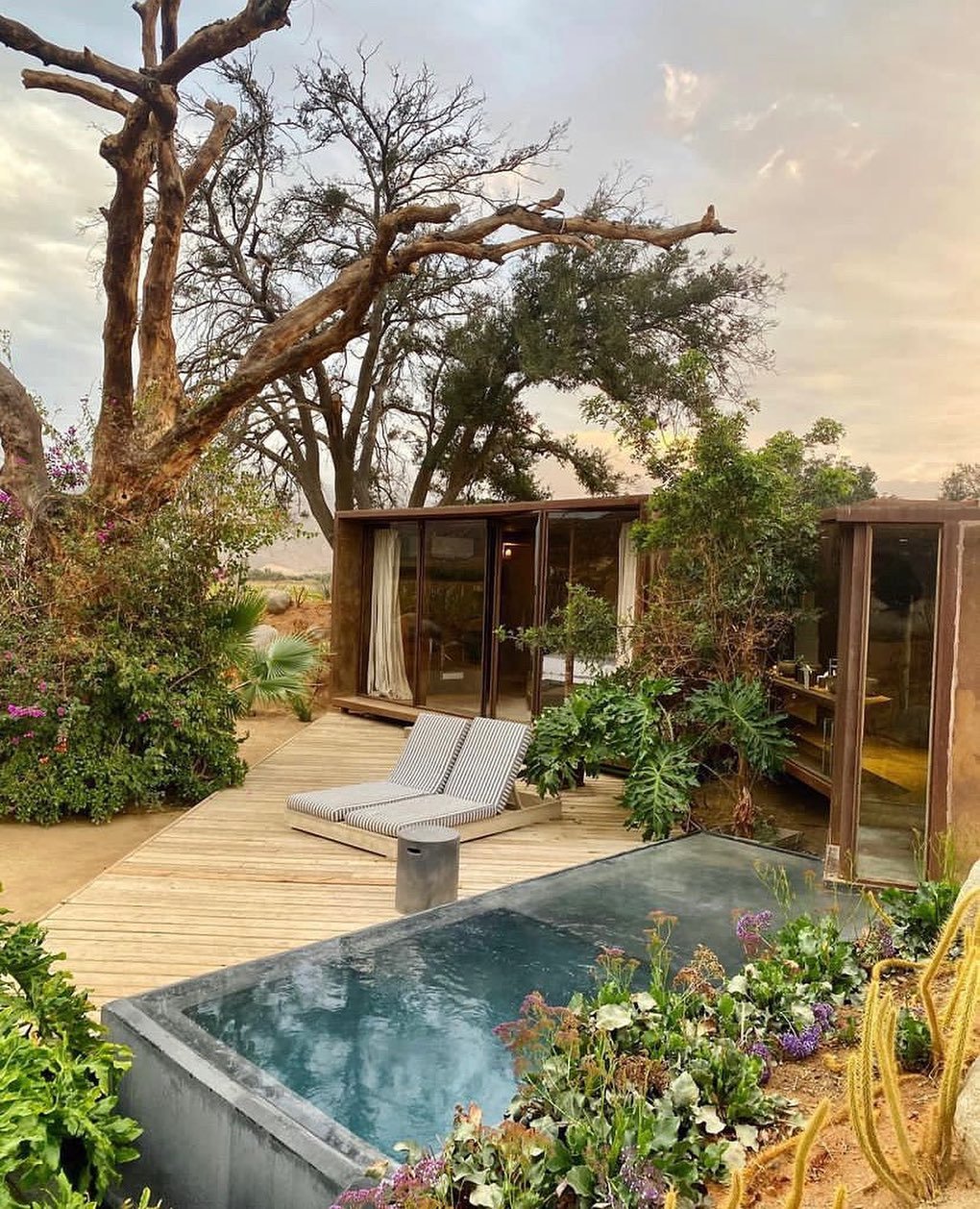 Hotel Contemplación Valle de Guadalupe is an oasis of tranquility and beauty located in the middle of the pristine wine country of Baja California. The hotel offers five cabins that welcome guests with a combination of modern elegance and contemporary style, featuring rustic touches of the natural environment within its design to emphasize its jaw-dropping panoramic valley vistas. Guests can explore the manicured gardens to meditate or relax by the outdoor pool and gaze at the stunning sunset while sipping on a cocktail.