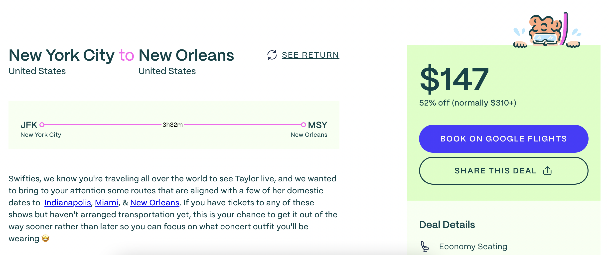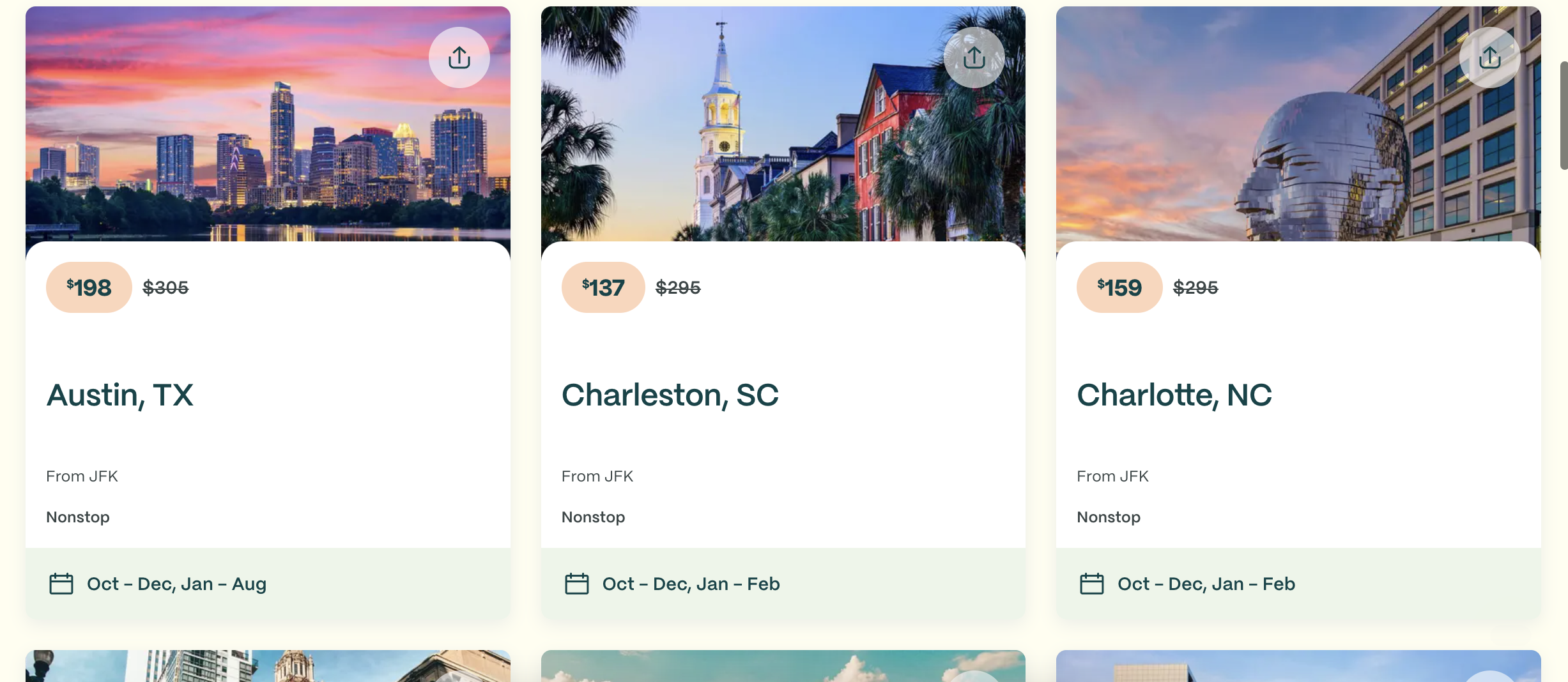 There are several features that make Going outshine its booking competition, and the first is a focus on destinations beyond the major East and West Coast hubs. It’s easier to find competitive pricing from cities like New York and Los Angeles due to scale; finding good deals from smaller hubs like Cincinnati or Detroit can be especially challenging. They curate a surplus of domestic deals.