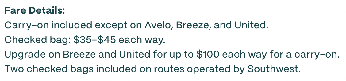 And while all of this is impressive and convenient, my favorite feature of this flight finder is—drumroll, please—a clear breakdown of what’s not included in each ticket. I’ve always relied on Skyscanner and have been burned ad nauseam by hidden fees, i.e. the carry-ons and checked bags that tend to cost a vital organ in addition to base fare. In contrast, Going clearly outlines the total price of roundtrip flights in straightforward language so you’re able to quickly determine extra fees.