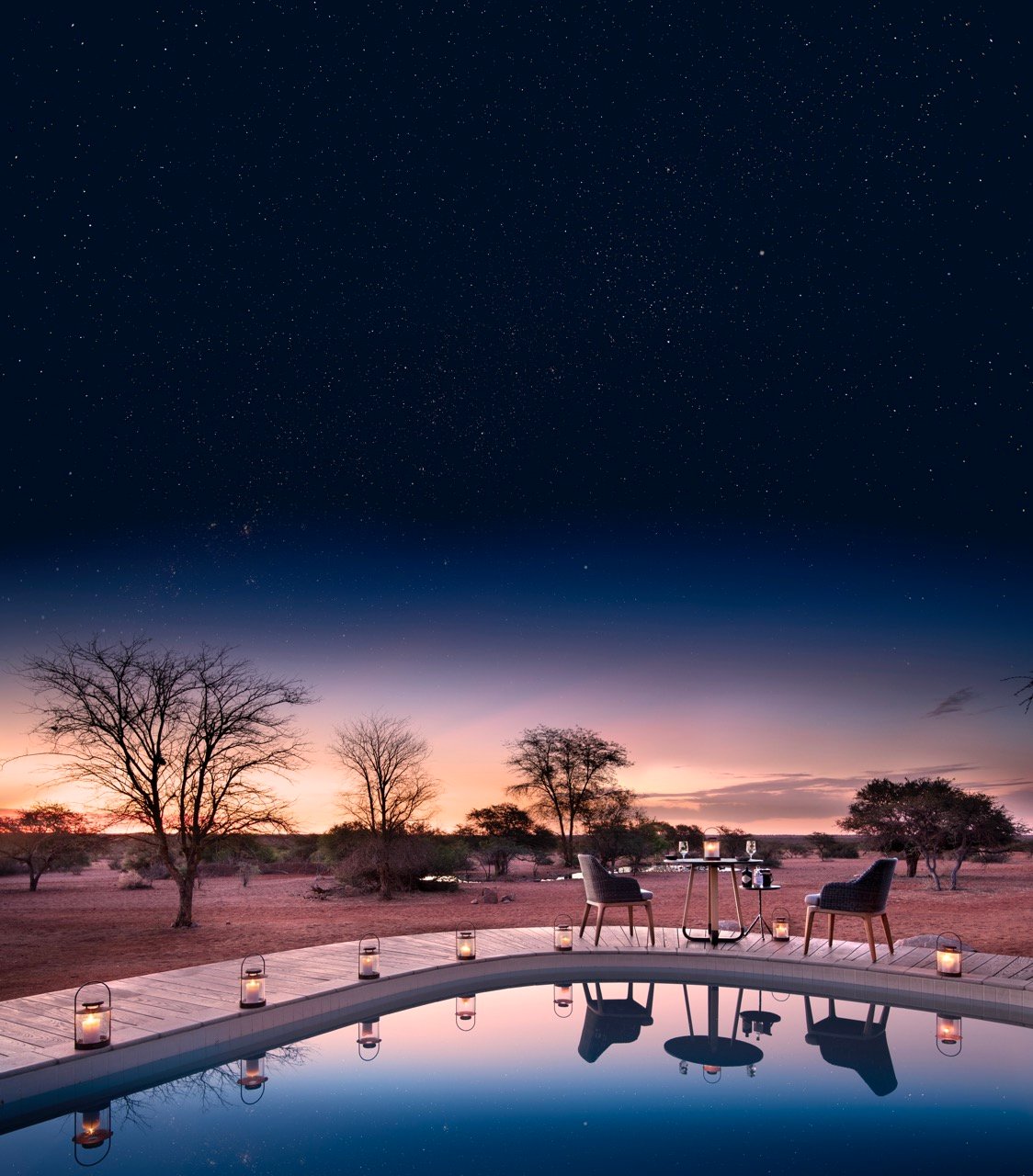Ensconced in the foothills of the Korannaberg Mountains, this swish yet rustic camp has nine individual legae: traditional thatched-roof dwellings hewn of local stone and red earth. Guests are rewarded with the utmost seclusion and the largest protected wildlife reserve in South Africa at their fingertips: the Kalahari. Activities run the gamut from high-drama game drives and walking safaris to helicopter rides and stargazing.