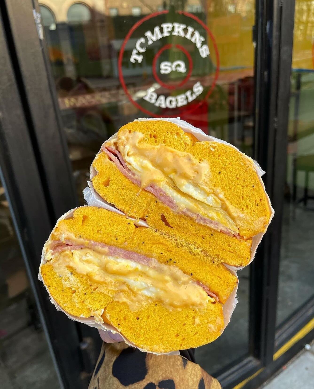 At Tompkins Square Bagels in the East Village, you’ll instantly feel the NYC buzz—yes, there’s a line, but don’t worry, the staff takes good care of you before you hit the counter. Kettle-boiled and baked over wood planks, these bagels are soft and chewy inside with a crunchy exterior when toasted. Pro tip: don’t toast if you’re diving into their unique cream cheese flavors like wasabi or cookie dough. And if you're a bacon, egg, and cheese fan, “The Jersey,” with Taylor ham, is the ultimate upgrade.