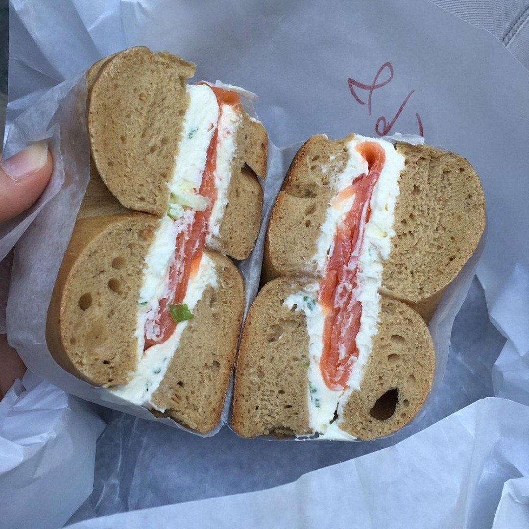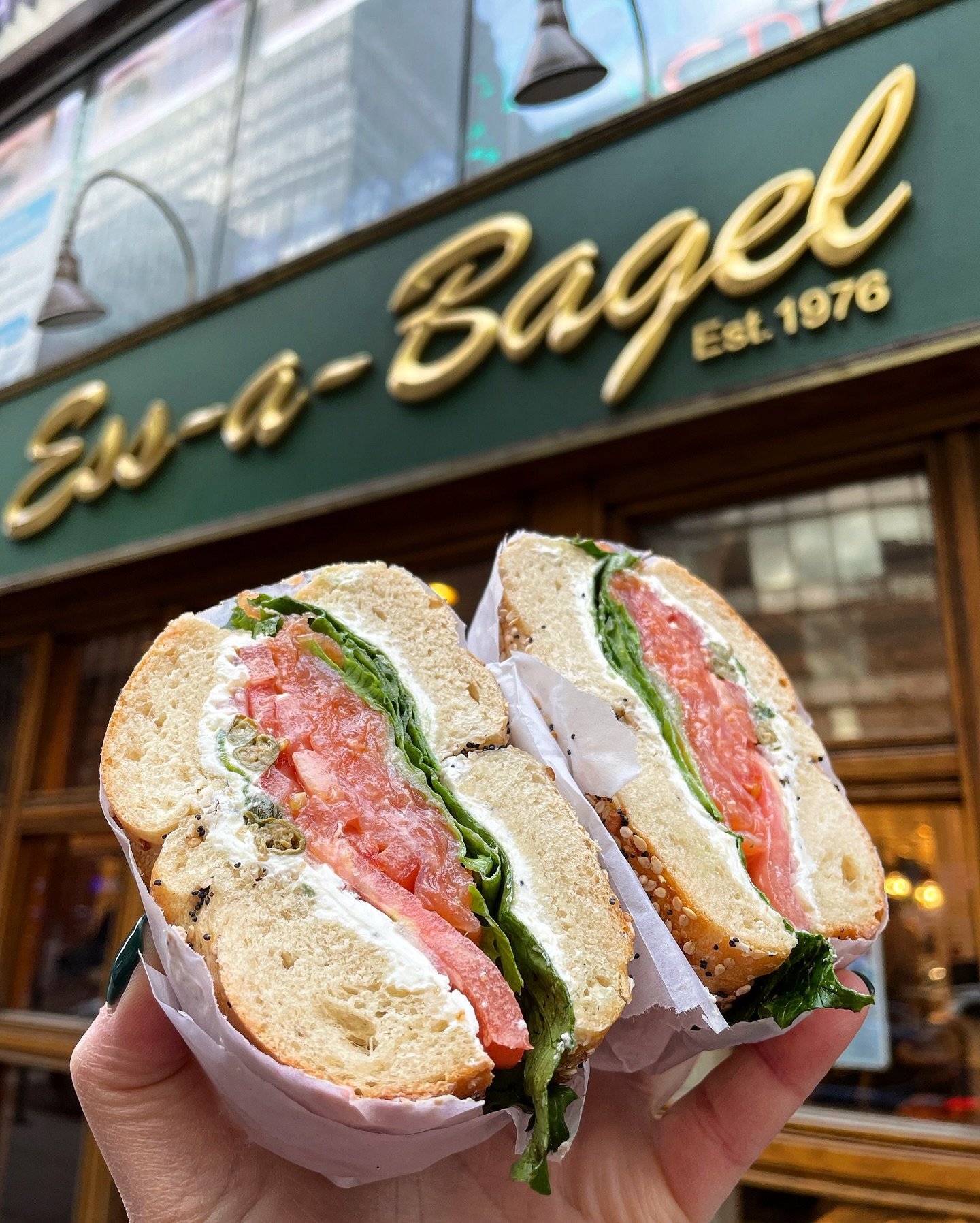 Ess-a-Bagel has been a New York bagel icon since 1976, serving up what they call the “quintessential New York bagel” at spots from Chelsea to Dumbo. Using hand-rolled, kettle-boiled methods, this family-owned gem doesn’t mess around. Their “Signature Favorite” sandwich—sliced nova, scallion cream cheese, lettuce, tomato, red onion, and capers—is a must.