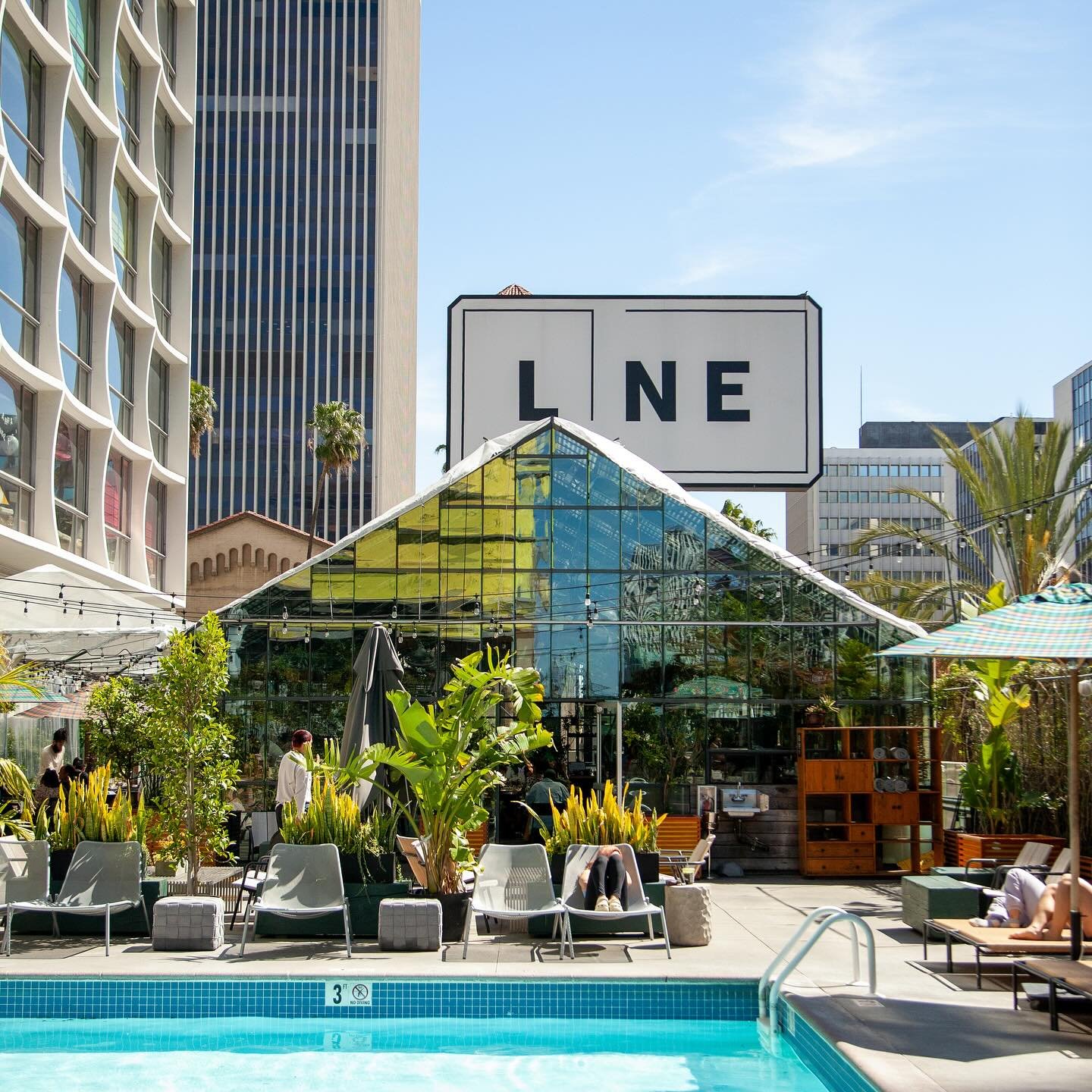 Housed in its iconic modernist tower on Wilshire Boulevard, The Line Hotel injected Koreatown with a fresh, buzzy energy upon opening. Designed by architect Sean Knibb, the interiors balance industrial flair with contemporary comforts—think exposed concrete walls, plush gray tufted couches, and expansive floor-to-ceiling windows flooding the space with natural light. The highlight, though? The second-floor pool terrace, a sun-soaked hotspot primed for day-to-night poolside revelry.