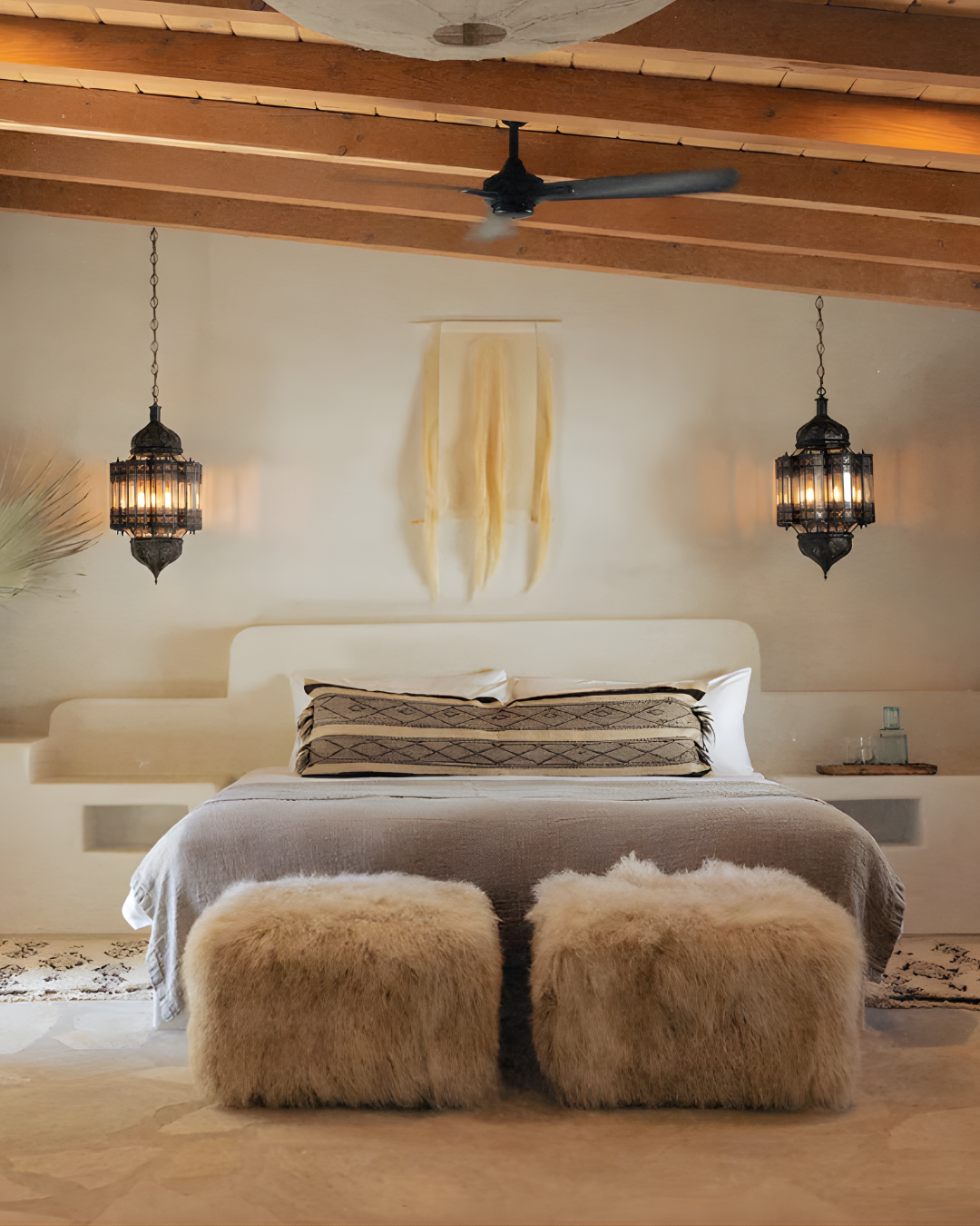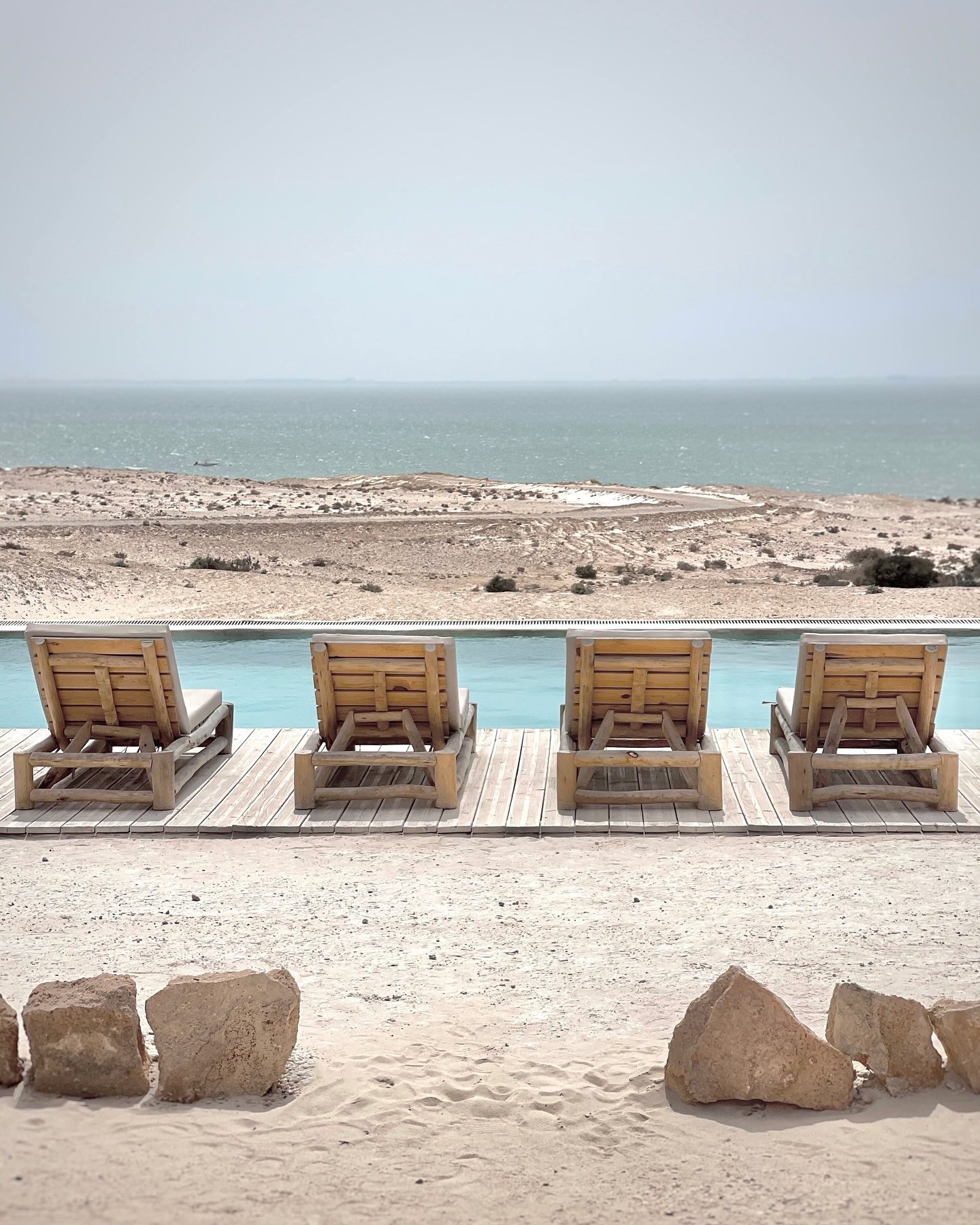 La Tour d’Eole is an eco-minded escape on Dakhla Bay, set on El Argoub beach with 300 days of wind and its own watersports academy for kitesurfing, windsurfing, and wing-foil. Its 45 rooms—bungalows, suites, and villas—are sustainably built, many with ocean views, and villas come with private pools. The spa offers Berber massages, yoga, and a Zellige-tiled hammam, while the heated geothermal infinity pool overlooks the lagoon. All-inclusive dining (drinks extra) leans hyperlocal and organic, with oysters from two kilometres away, lagoon-caught fish, and Moroccan–French plates by chef Ali Timouni.