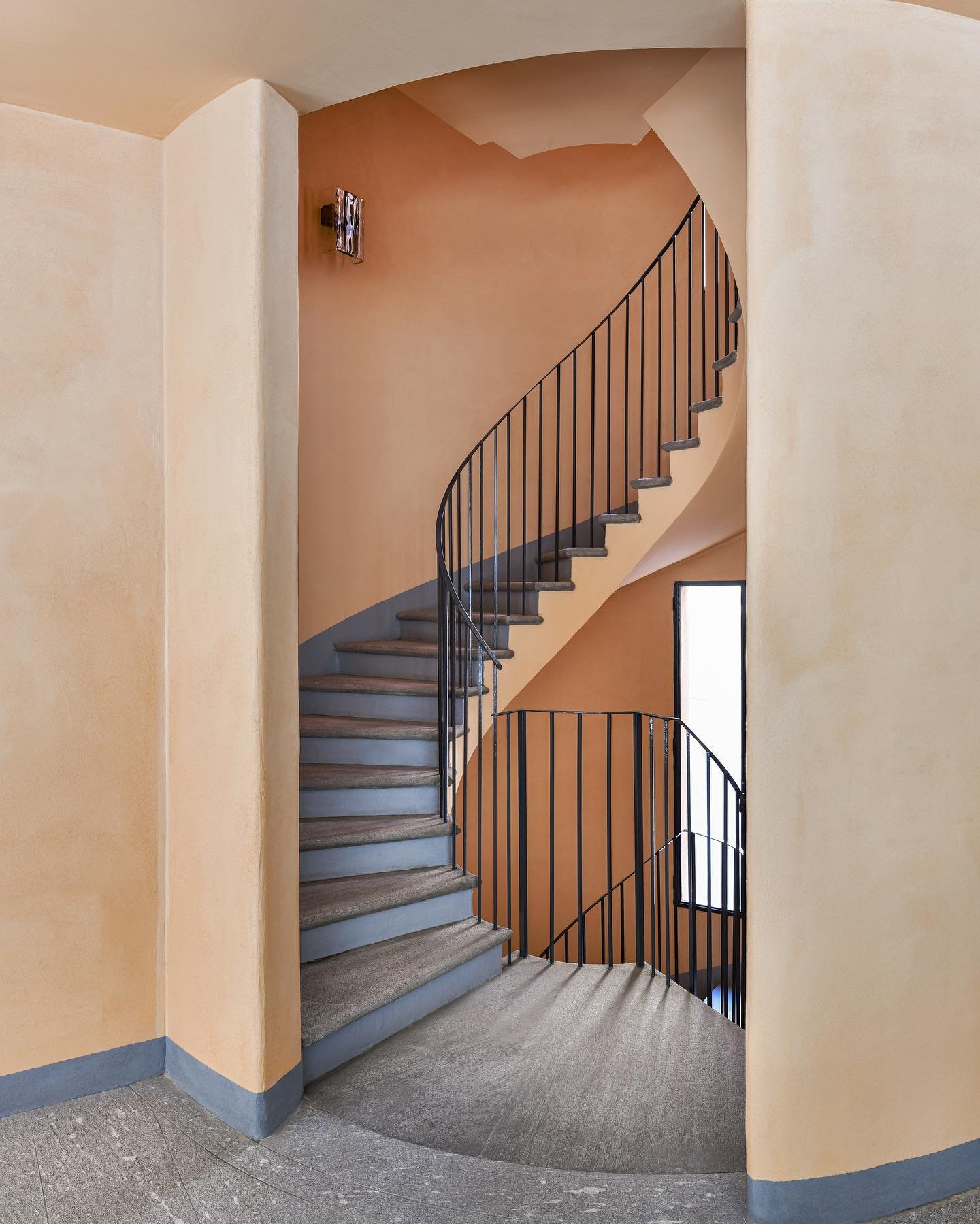 Behind its rationalist 1970s façade lies a love letter to 20th-century Italian design. Matteo Thun & Partners—the same minds behind The Langham Venice and Vienna’s Altstadt—helmed the renovation, pulling threads from Milanese modernist icons like Gio Ponti and Piero Portaluppi. The result is a sophisticated interplay of bespoke furnishings, geometric boiserie, terrazzo detailing, and a sculptural spiral staircase illuminated by Murano sconces. Casa Brivio doesn’t shout; it whispers—every line and texture reflecting the city’s design pedigree.