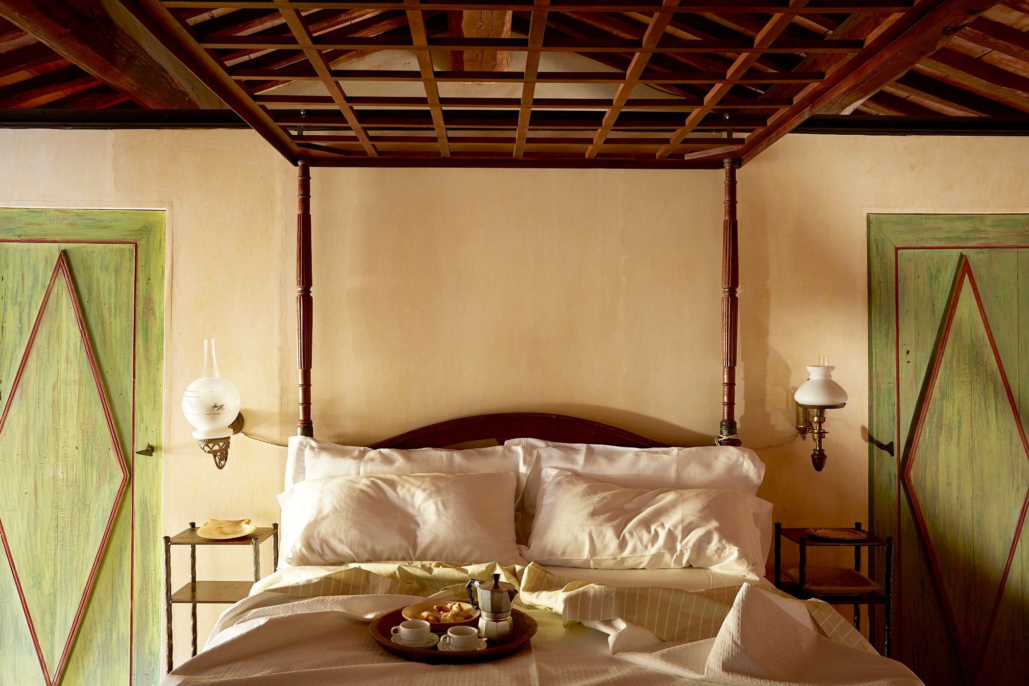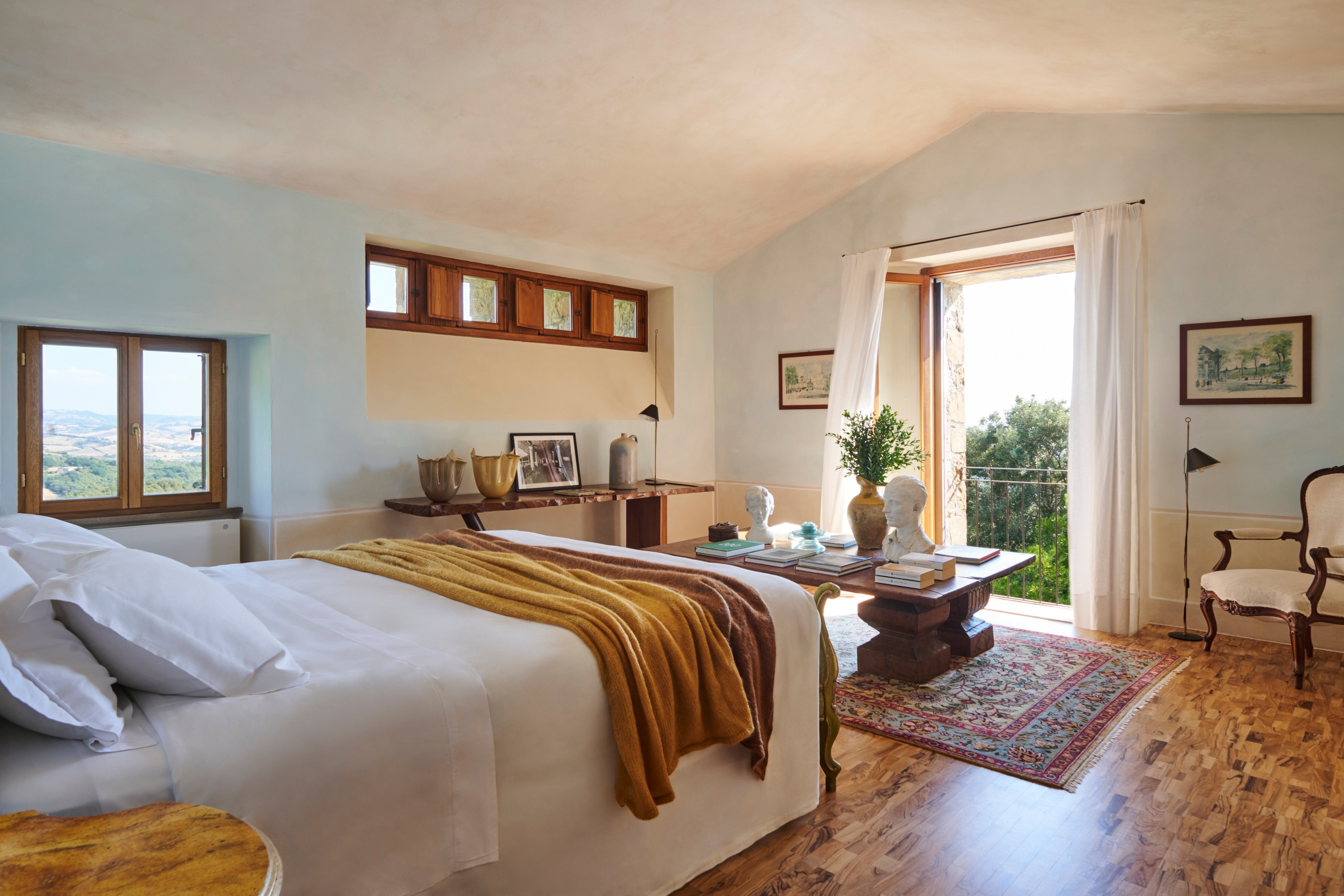 Stylistically, it’s a bit of a mish of everything. There are all the breezy linens, tables chockers full of books and family totems, Tuscan antiques, period pieces picked up at auction over the years, countless oriental rugs, cabinets of curiosities filled with all sorts of ornamental china, and rooms filled with a medley of Indonesian pieces collected during the family’s time living abroad in Indonesia. The suites are just as eclectic. None are the same, but expect Indonesian daybeds, antique Persian rugs, modern art pieces and intricately carved wooden vintage chest that shriek wow.