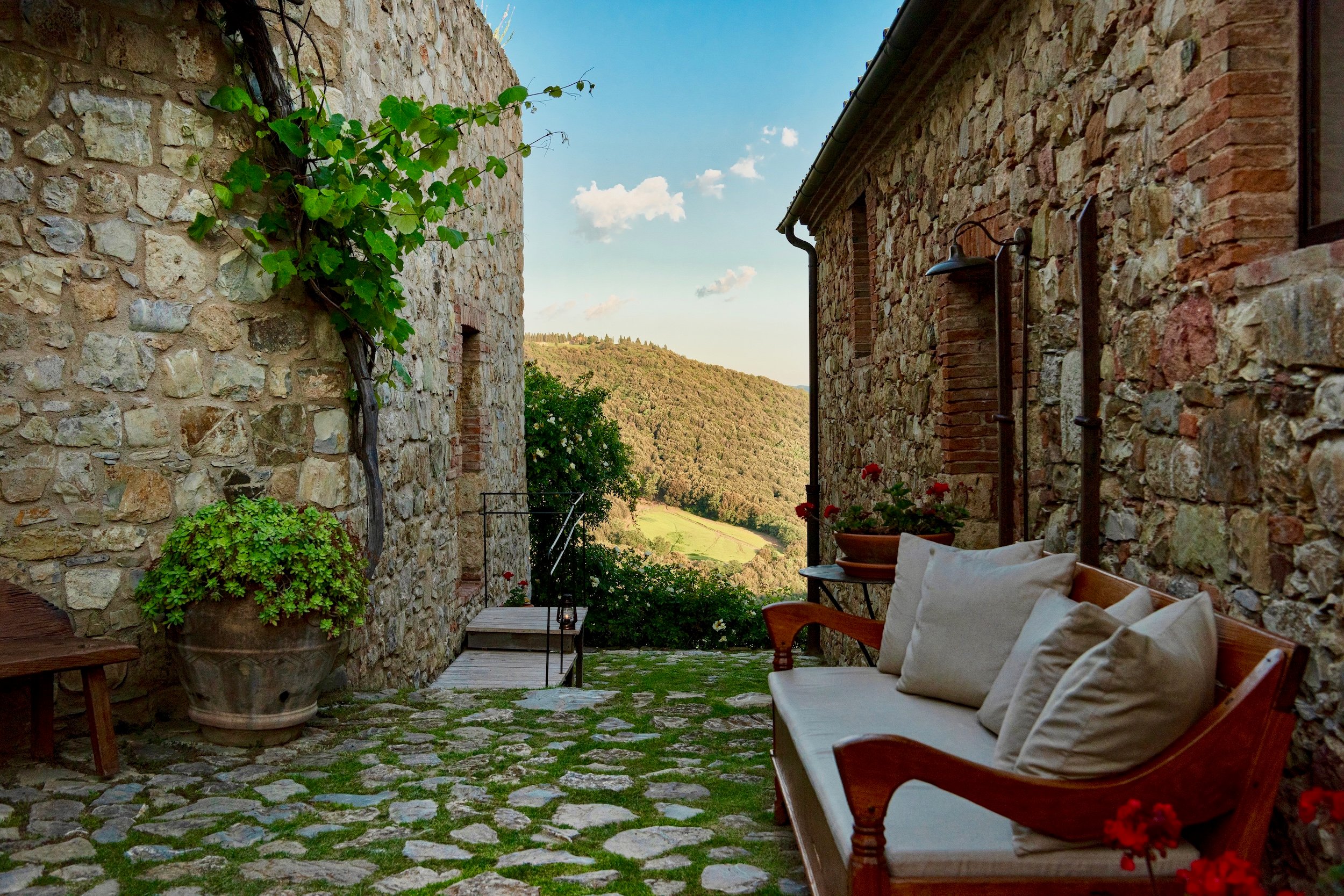 While it all looks gorgeously polished, unsurprisingly, the castle was found in a state of ruins when Aurora and Carlo Baccheschi Berti set out renovating the place as a family home back when they snagged it back in the 1970s. Today, it’s all run under the watchful eyes of their three sons Neri, Brando and Corso each of whom have left their mark on the place over the years. The result is a tastefully personal rendition of a modern and storied Italian retreat with all the modcons and services to match.