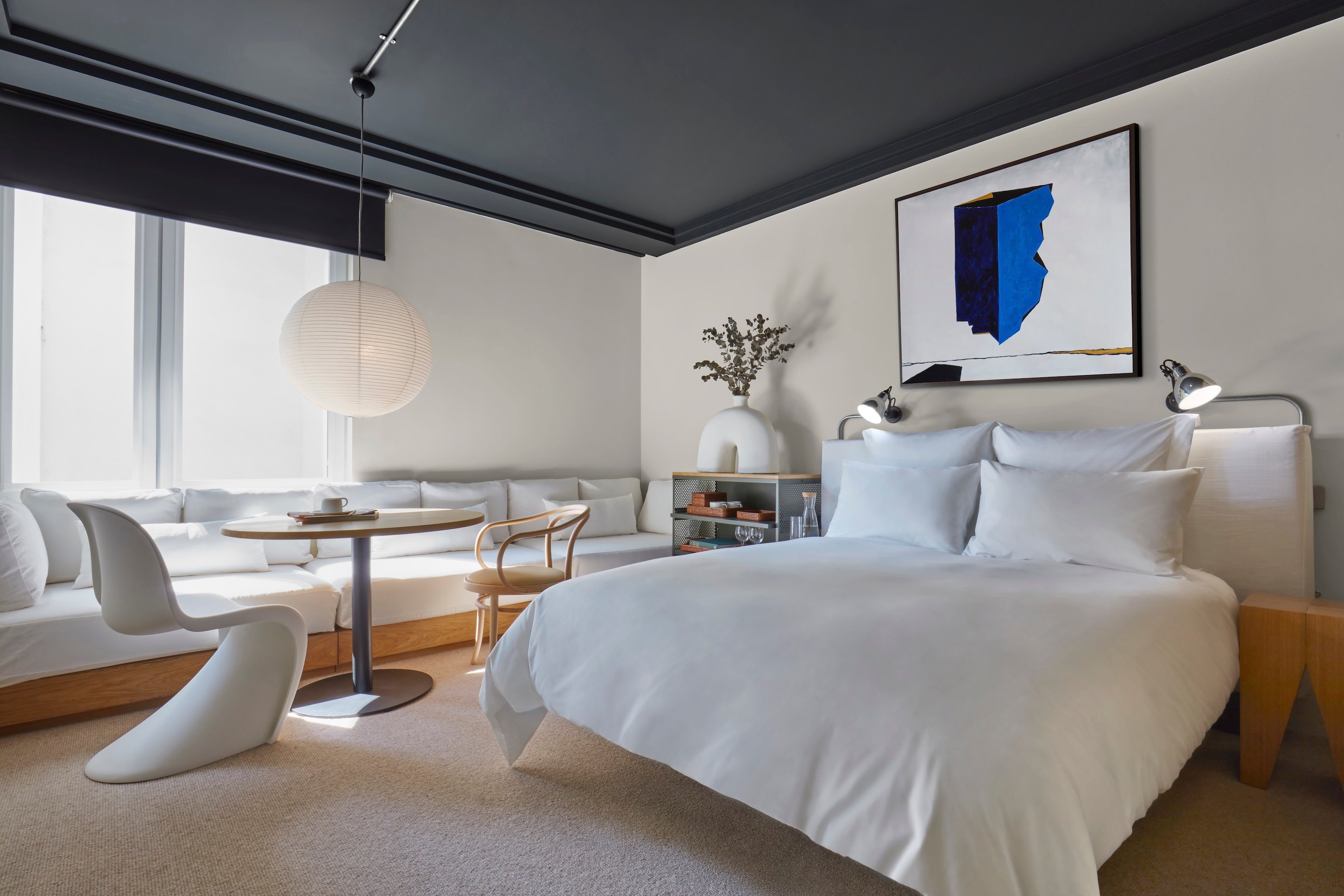 The guest rooms are serene, Scandinavian-inspired havens: the palettes consist of neutral hues with wood and silver accents; orbital paper lanterns hang from the ceiling; and minimalist artpieces or woven rugs hang above the bed. Guests can enjoy their own place to disconnect and recharge, balancing the vitality found in the hotel’s bars and restaurants.