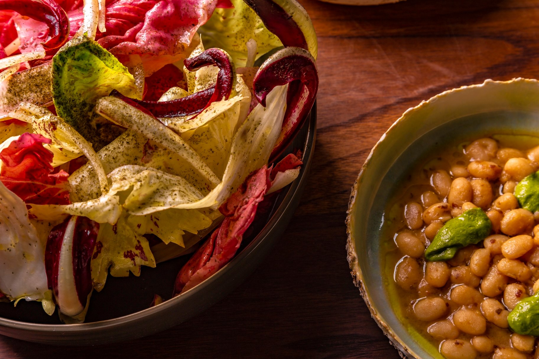 As you move throughout the space, a large table meant for groups lines a mural-painted wall. The kitchen is presented in an open-layout fashion with a wood-fired oven, allowing all eyes to see the chefs at work. Sometimes, a light, smokey haze fills the restaurant from certain dishes sizzling in the oven or on the stovetop. While that might sound unappealing, it doesn’t negatively impact the experience; it enhances its sultry aura (literally from the heat and figuratively from the atmosphere).