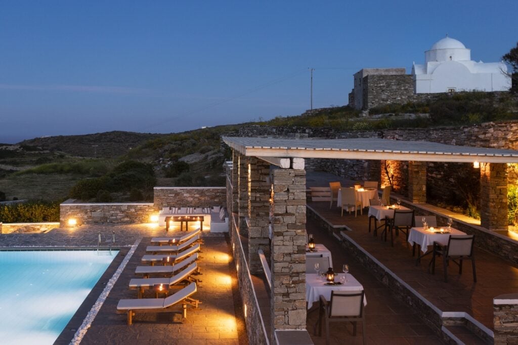 Dining at Gerofinikas is a celebration of Sifnian cuisine. The on-site restaurant offers breakfast, lunch and dinner, with ingredients from local sources in Sifnos.