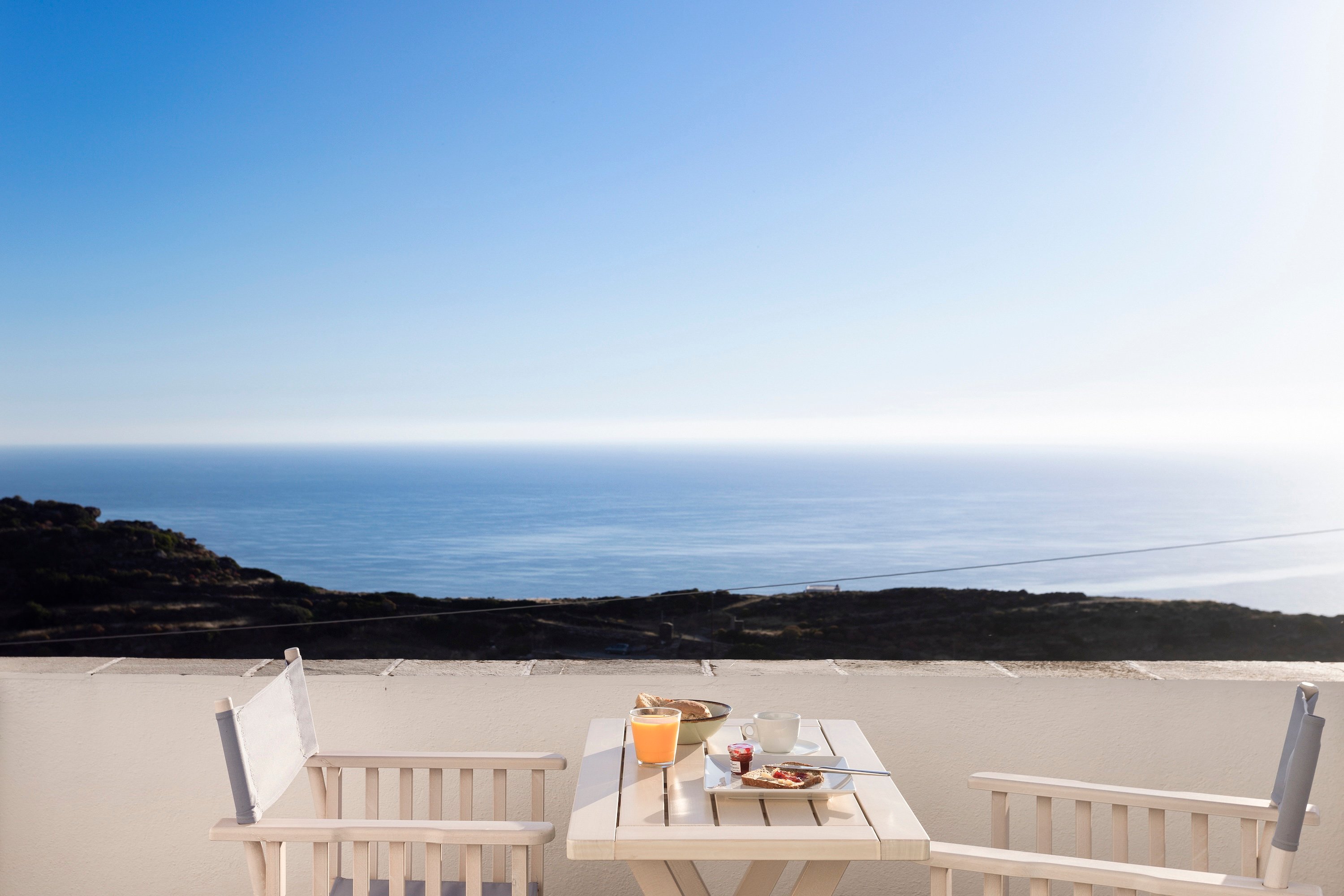 Accommodations at Gerofinikas are a study in understated elegance. Each of the rooms features a minimalist design with a subtle color palette of whites, creams, and soft blues that create a soothing atmosphere, while private balconies and terraces inspire guests to take a moment to soak in the sun.