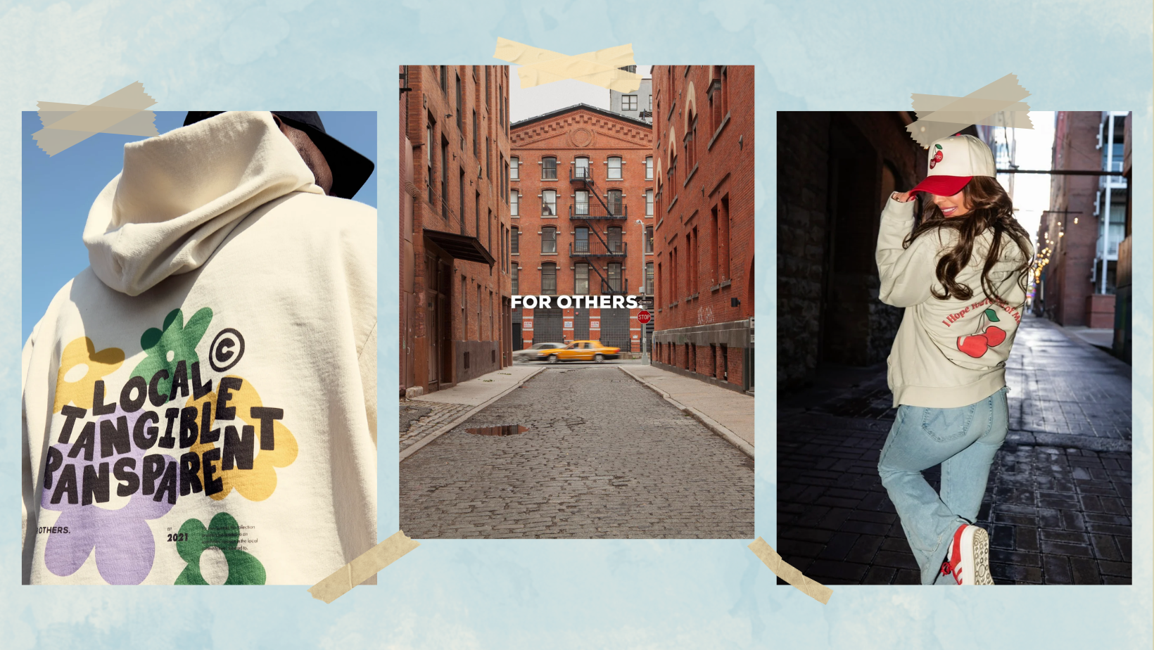 Imagine this: you’re walking through the airport after your holiday vacation in an oversized crewneck, dad hat, and leggings. You have the air of Kith but the empathy of a social worker. You look cool but more importantly, you’re socially conscious–and it’s all because you’re wearing the hottest streetwear with a soul. Enter: For Others. This accessible streetwear brand merges charity with style, provides real impact to local communities, and looks great on everyone.