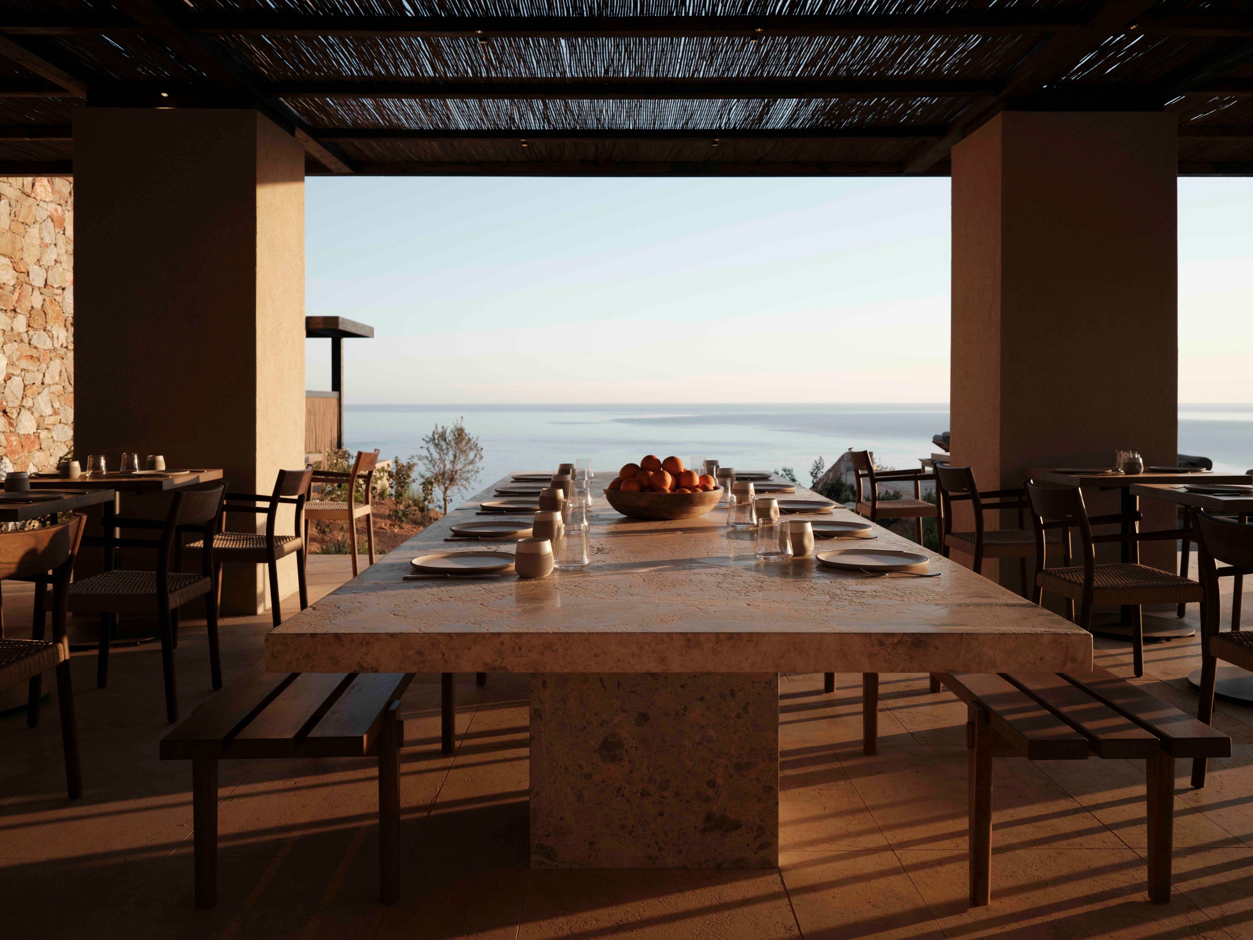 Infinity pools, an organic farm, a state-of-the-art fitness center, and a hi-fi listening bar for music lovers. Sustainability is woven into everything—from solar power to the replanting of 600 native species and the protection of the endangered Eleonora’s Falcon.