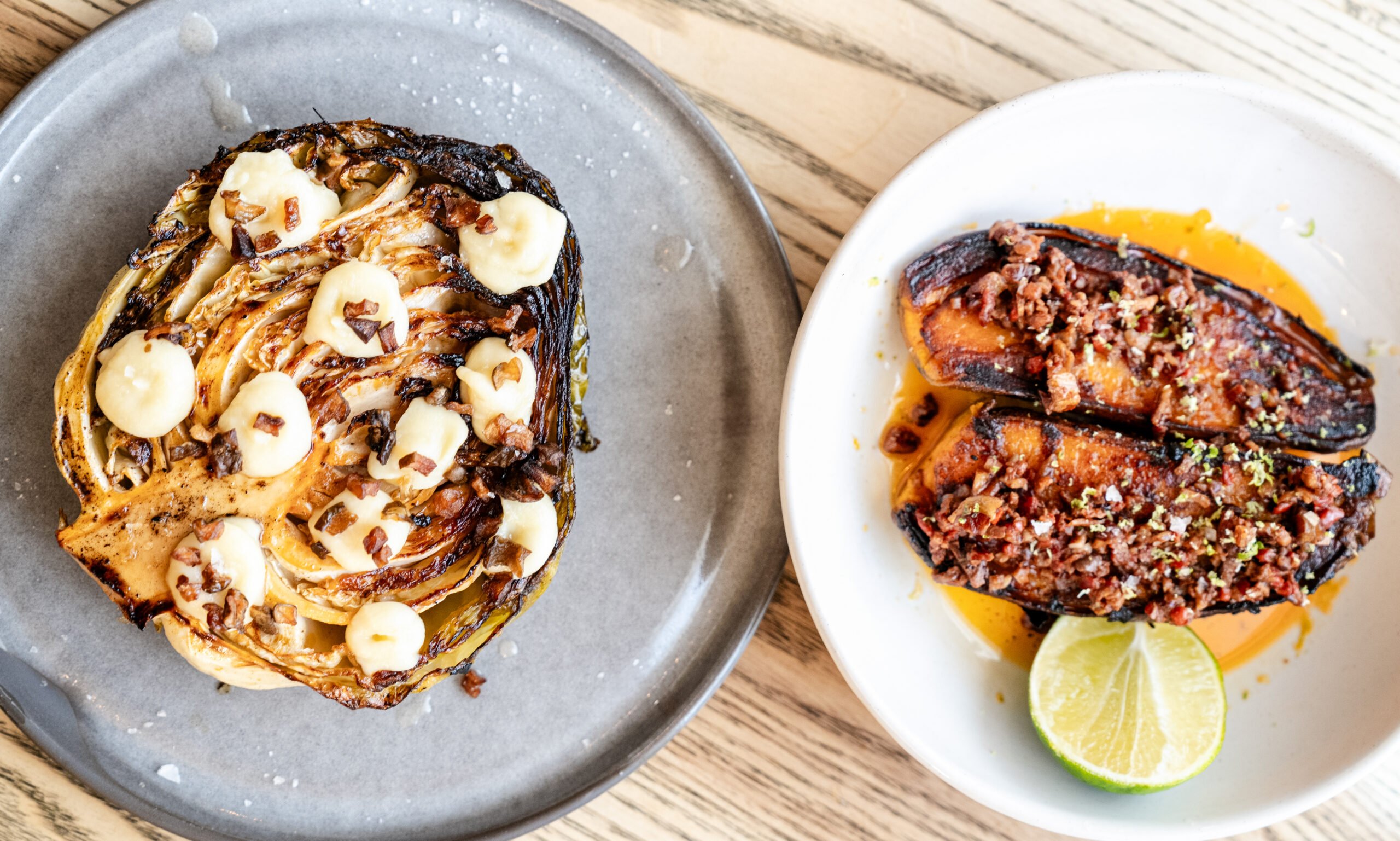 While there’s plenty of great Alexandria dining (looking at you, Ada’s On the River, and Vermilion), newcomer Kiln at Hotel Heron is quickly cementing its place in Alexandria dining lore. Although the space is bathed in light during the day, once the sun sets, the lights are dimmed to create a moody, intimate setting where all attention is focused on the open kitchen, which centers around a wood-fired hearth.