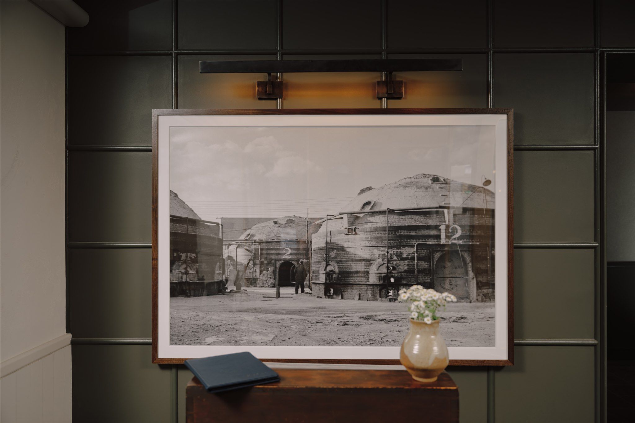 Lit by three unique hanging light fixtures, the welcoming lobby features warm colonial-style wood flooring and panels with federal blues, greens, and sharp hits of white. The concierge desk is accentuated by handmade tiling, while a sitting area immediately to the right of the entrance offers guests a welcome respite from a busy day of sightseeing. Head up the stairs of the multi-level lobby to find a delightful library, complete with a small reading selection, a chess board, and a long communal table ideal for catching up with friends and work. While the hotel has yet to see colder days, a fireplace with a reclaimed mantle stands at the ready.