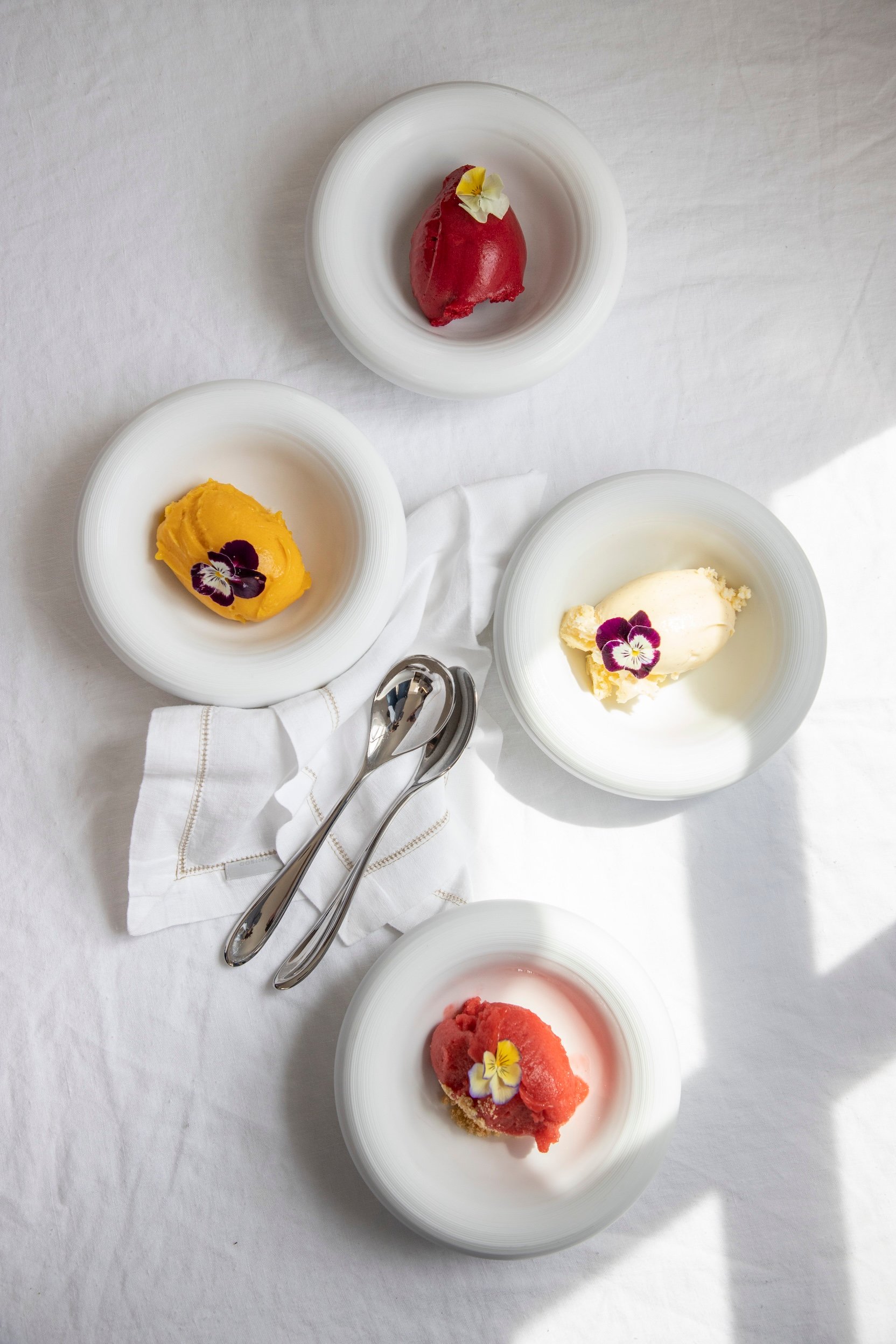 From an expert-curated wine program to a full-fledged whisky selection, various spritzes, martinis, and non-alcoholic libations, you'll surely find something to enjoy here before, during, or after your meal. However, we were particularly drawn to the signature cocktails and opted for the Melitta—a blend of Votanikon Dry Gin, chamomile, honey, and lemon. A vibrant purple and yellow flower garnish complements its golden yellow hue and foamy top.