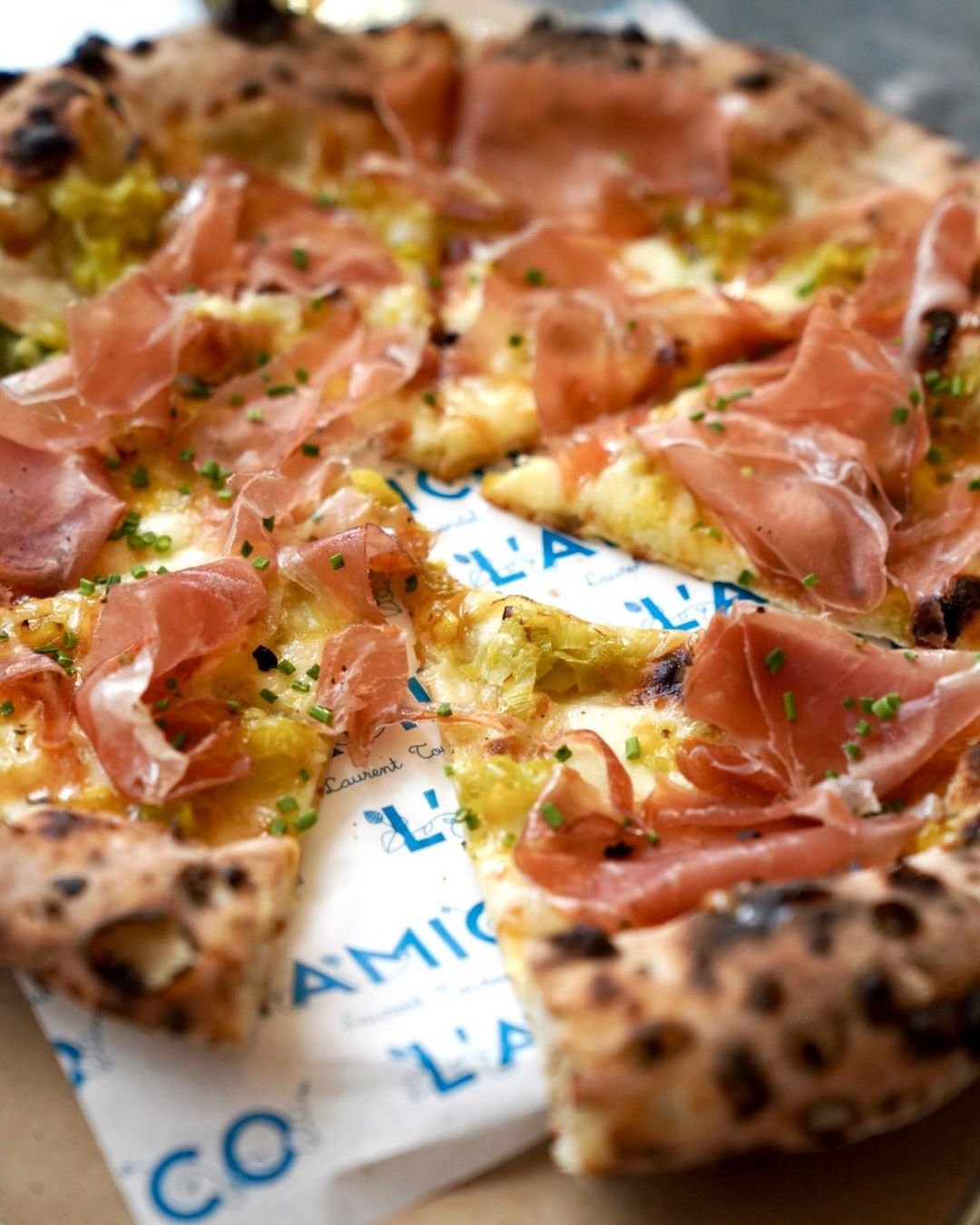 Our favorite dish on the menu: The pizza is truly exceptional–don’t miss the classic mozzarella di bufala or any of L’Amico’s other wood-fired creations.