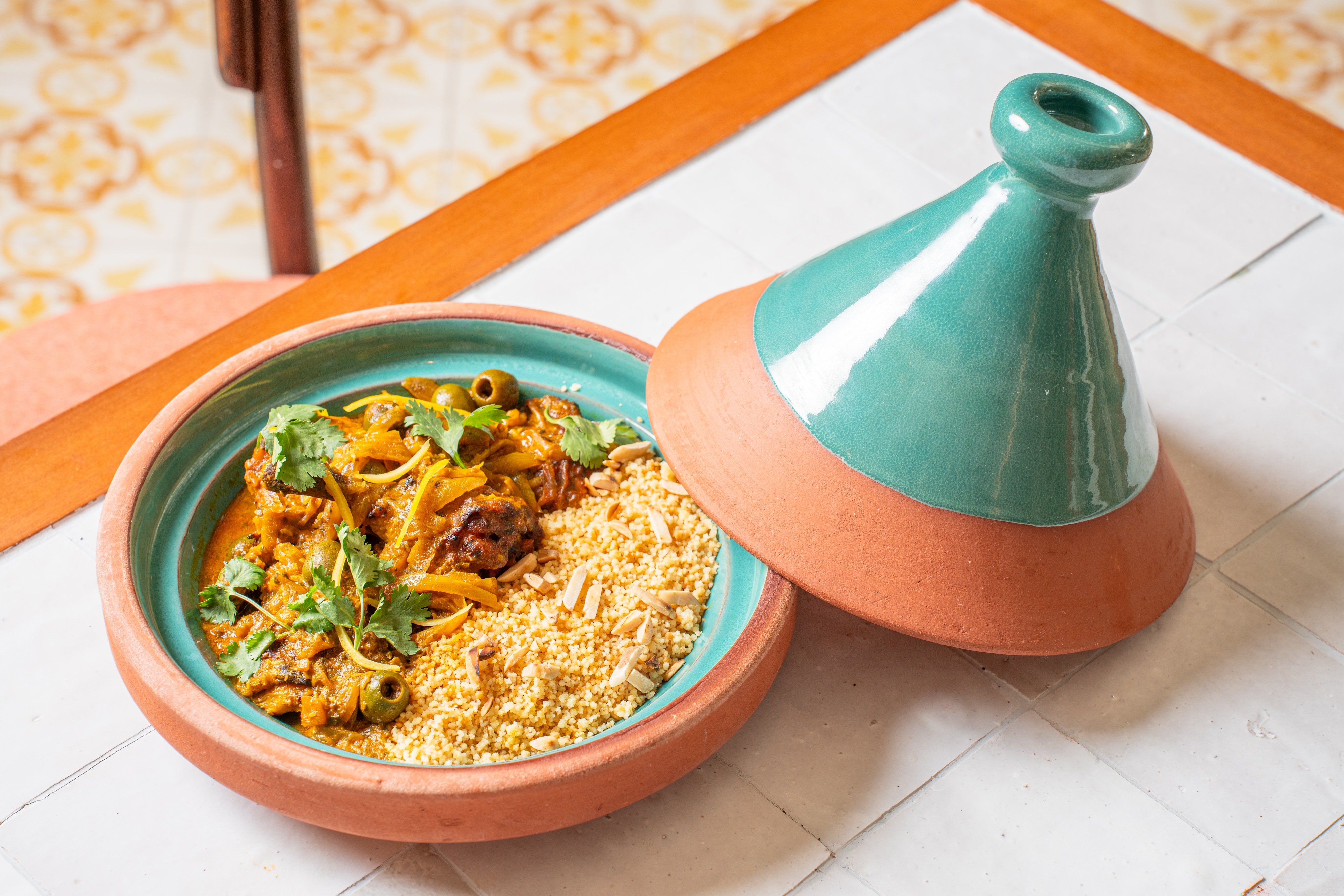 From the grill, the Adobo-Rubbed Skirt Steak melts into its smoky, spiced perfection. Larger plates round out the menu: the Braised Short Rib with harissa-date glaze is rich and slow-cooked, and the Chicken Tagine glows with turmeric plus honey, offering a tender nod to North Africa’s culinary soul.