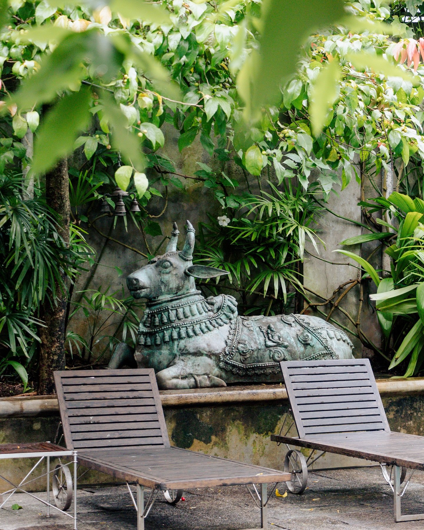 Our favorite part of the hotel: Maniumpathy's charming garden-heavy courtyard makes it feel like there's no busy metropolis engulfing it.