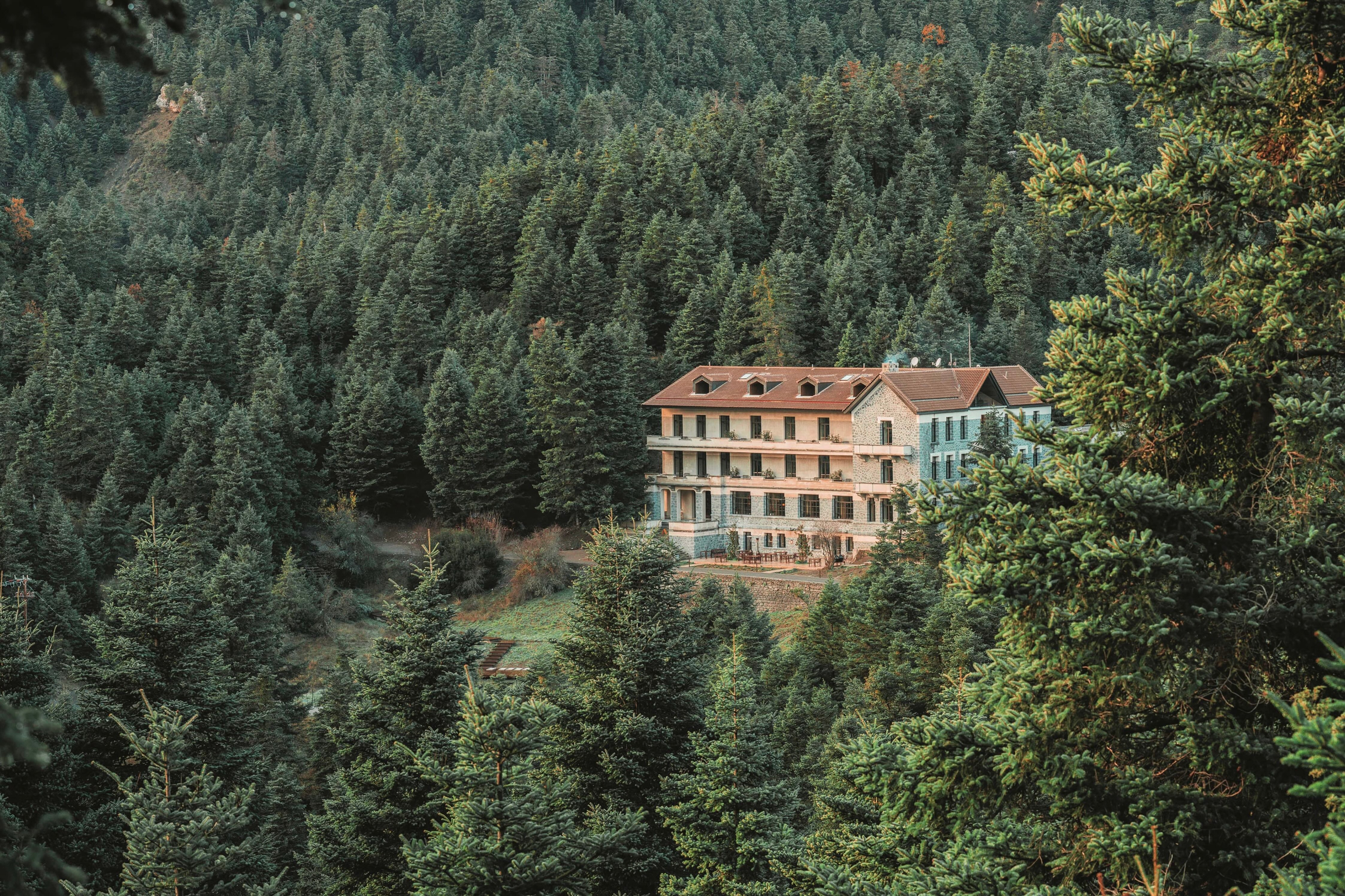 At 1,200 meters in the fir-lined mountains of Arcadia in the Peloponnese, Manna, a member of Design Hotels and Marriott Bonvoy, is Greece’s refined take on an alpine retreat. After a twisting mountain drive through stone villages and pine-covered hills, rounding the last corner left me awestruck. The hotel’s stone façade beckoned—commanding and hinting at its storied history. Built in the 1920s as a tuberculosis sanatorium, Manna’s been lovingly restored by owner Stratis Bayatas, who spent his summer holidays as a child in the area and dreamed of giving new life to this childhood-remembered abandoned landmark. Wanting to honor the building’s legacy while creating a retreat for modern travelers, this has certainly been achieved: monastic stone walls meet velvet armchairs, rich woods, and sculptural lines. I loved how the space balances history and modern comfort, making it luxurious yet unpretentious, and I felt my pace slow immediately.