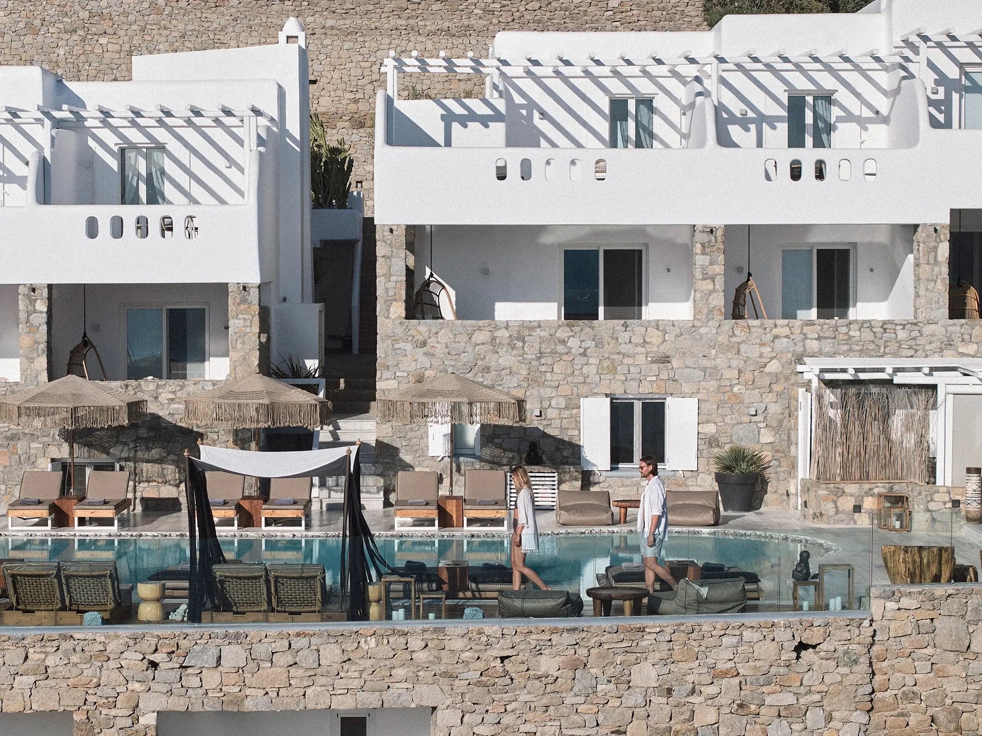 This minimalistic boutique hotel offers a view of the Aegean Sea that stretches beyond the line of vision. Shades of blues plus bohemian decor is a recipe for an enjoyable stay. From a loft suite to a signature suite with your private pool, take your pick for an unforgettable time.
