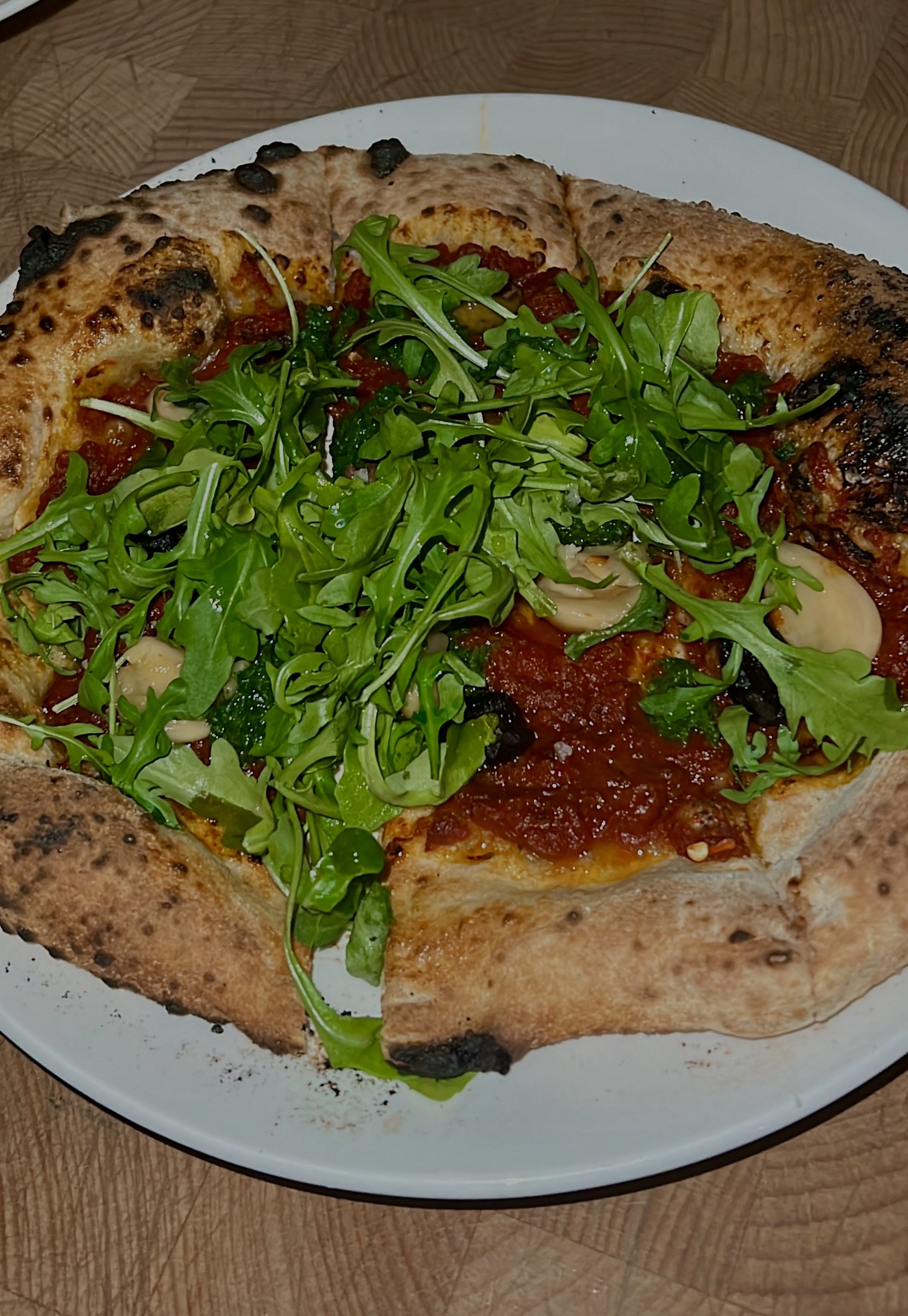 Our favorite thing on the menu: Everyone is sure to love the Hummus and Pita and any of the pizzas, though the best is arguably the off-menu Matbucha Pizza featuring Moroccan tomato jam.