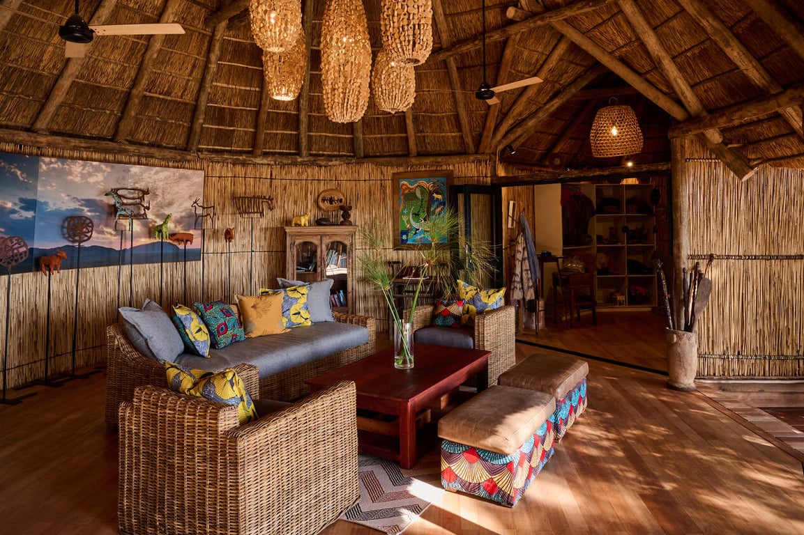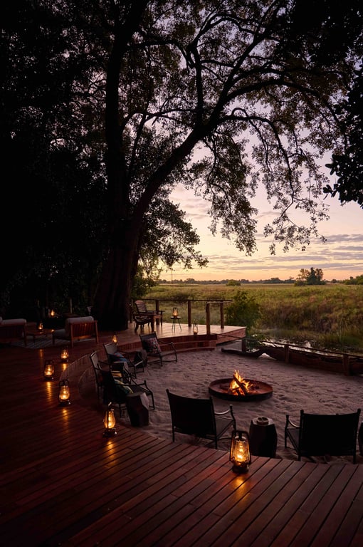 Now part of the Desert & Delta Safaris family, the property hasn't changed a whole lot over the years (in the best way). Rustic, relaxed, and very unplugged, this camp was made for those who want to immerse themselves in the Delta. The open-air main lodge is the ideal spot to regroup, complete with rattan furniture for lounging, and a crocodile fossil that gives the space a natural history museum feel. Cool touches like hanging lights, animal-inspired decor, and locally crafted accents complete the look.