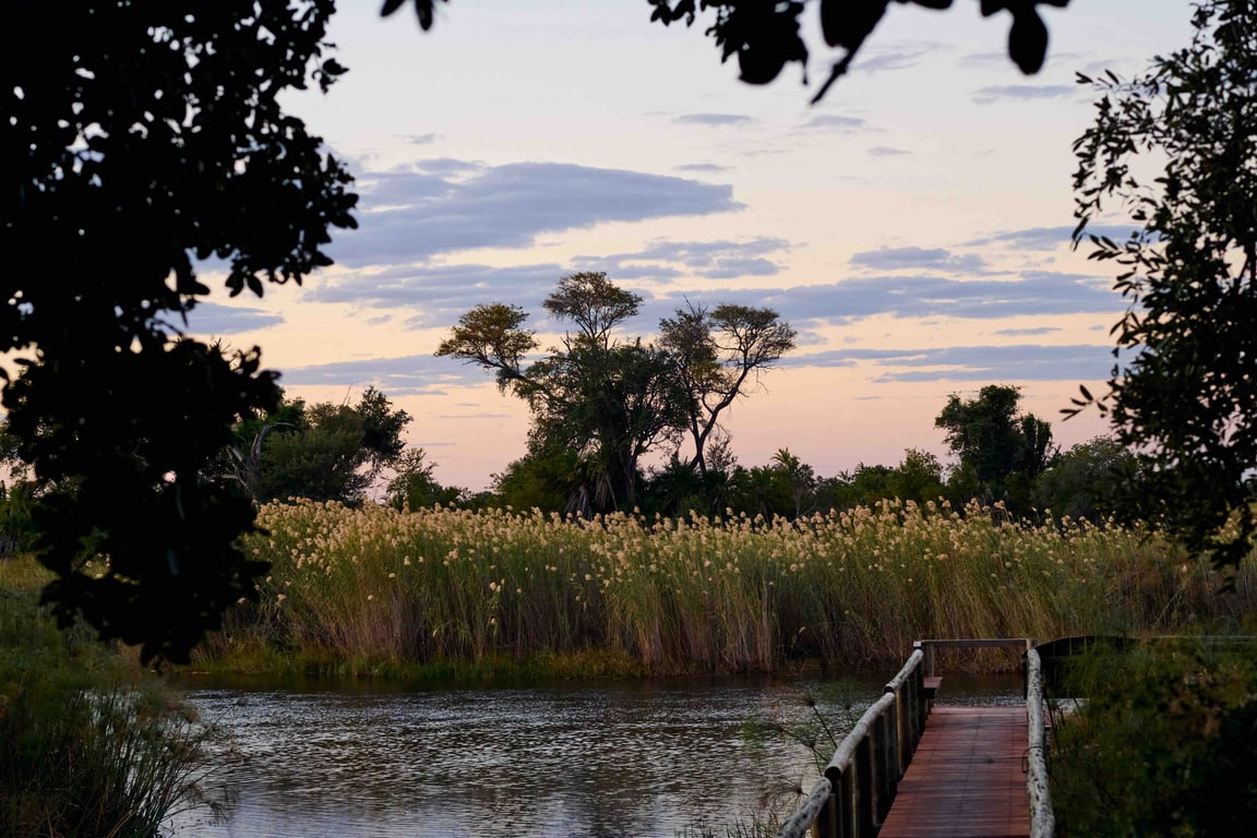 As for outside the rooms, this is a water lodge, first and foremost, meaning game drives are not available. Instead, guests get front-row access to the Okavango Delta the way it was meant to be experienced: by boat or mokoro. A mokoros, or traditional dugout canoe, is the highlight here: silent, slow-moving, and so close to the water you can touch the lilies if you so please. Apart from water activities, this area is great for birding since it’s home to kingfishers, herons, bee-eaters, and more. (Pro tip: Come from September to February for peak sightings.) Fishing is another big draw, especially for tiger fish, which are as intimidating as they sound. The lodge has guides and fishing poles, so all guests have to bring is patience.