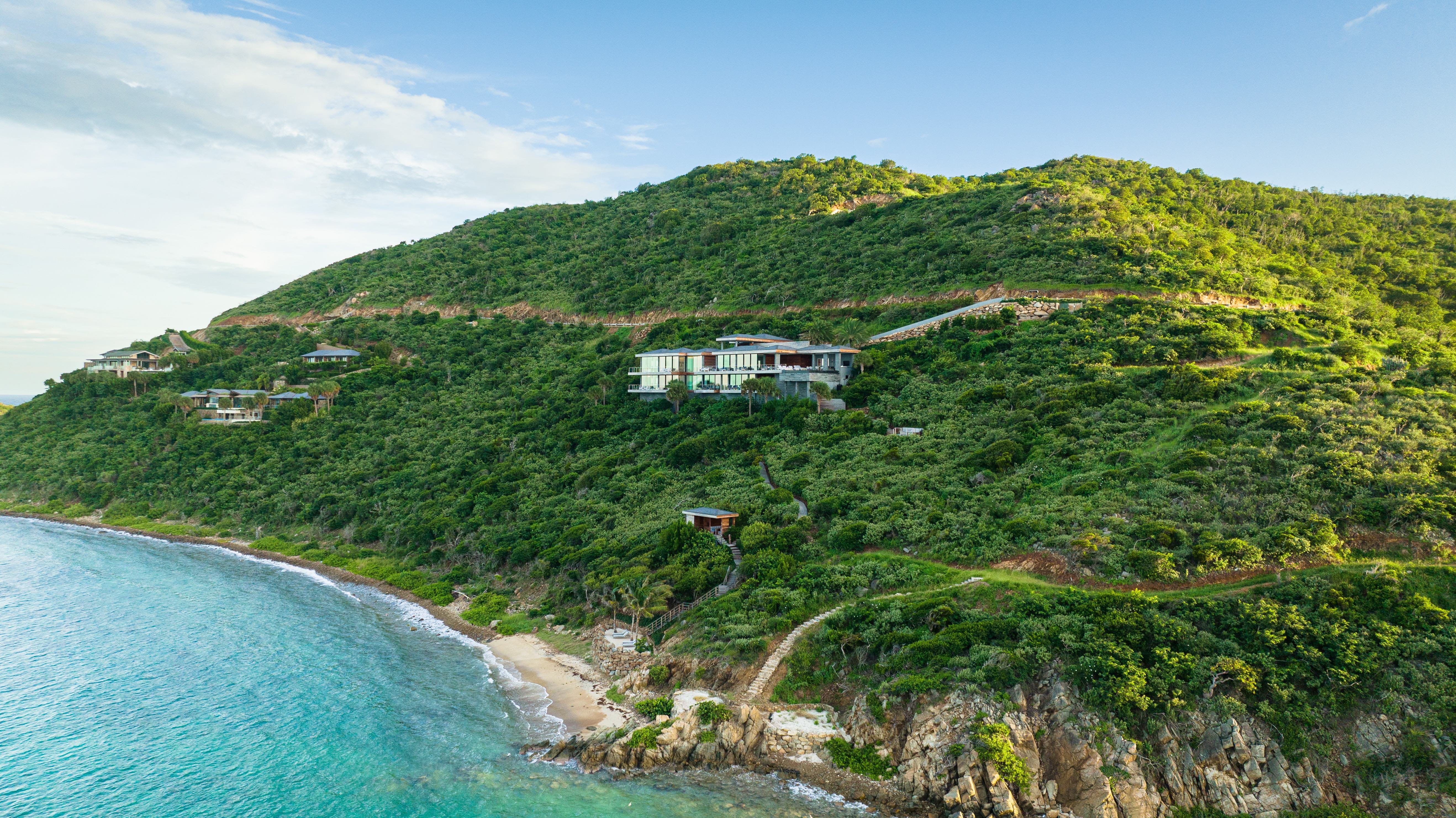 The property, situated on the region’s famed island of Virgin Gorda, touts unobstructed panoramas of the archipelago's unique topography: turquoise cays, jagged mountains, and seemingly endless ocean. Most accommodations (which range from one to seven bedrooms) are fitted with full kitchens, private pools, and outdoor showers, complete with modern, cool-toned furniture and finishes that capture the utmost in tropical luxury.