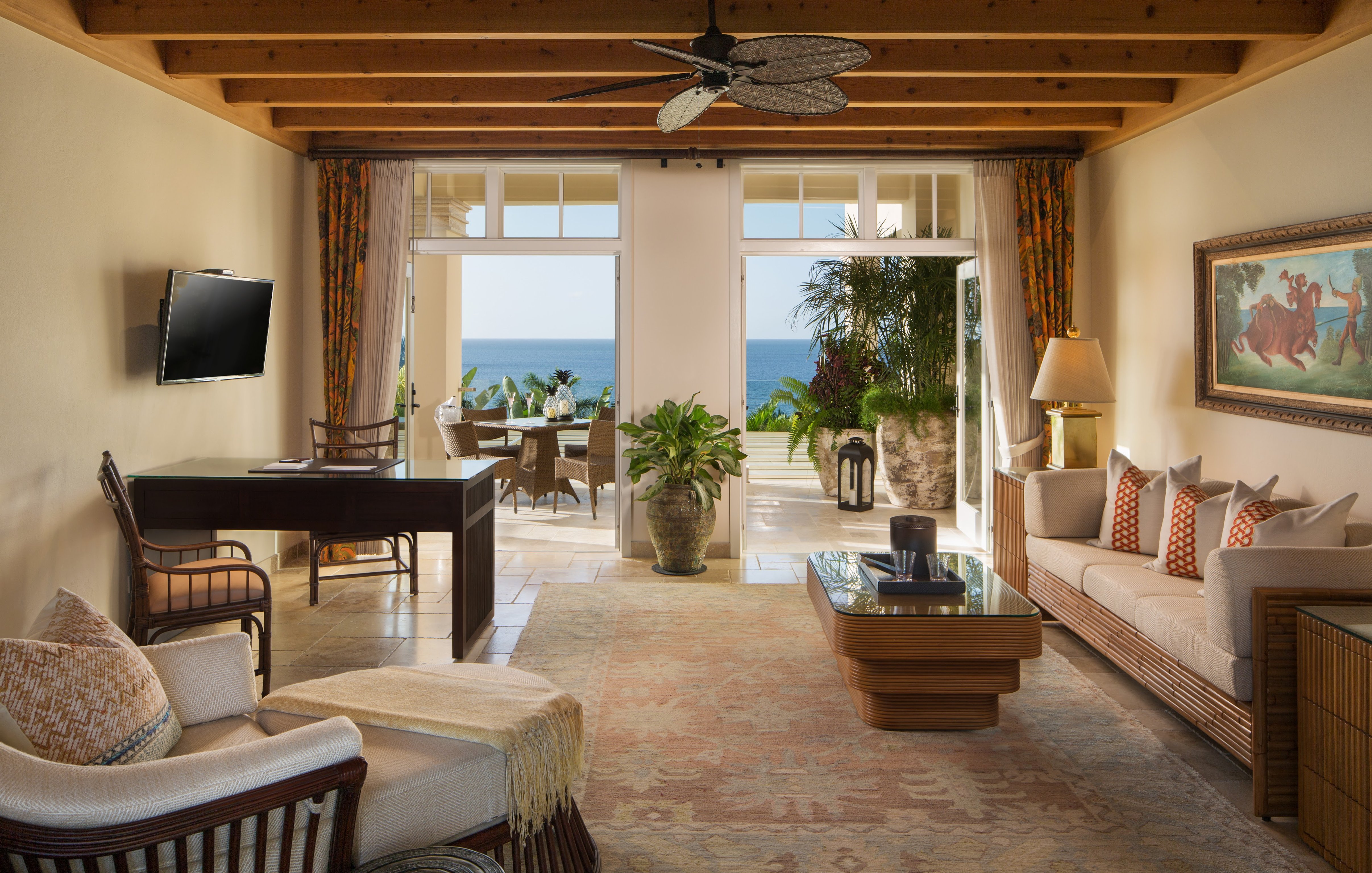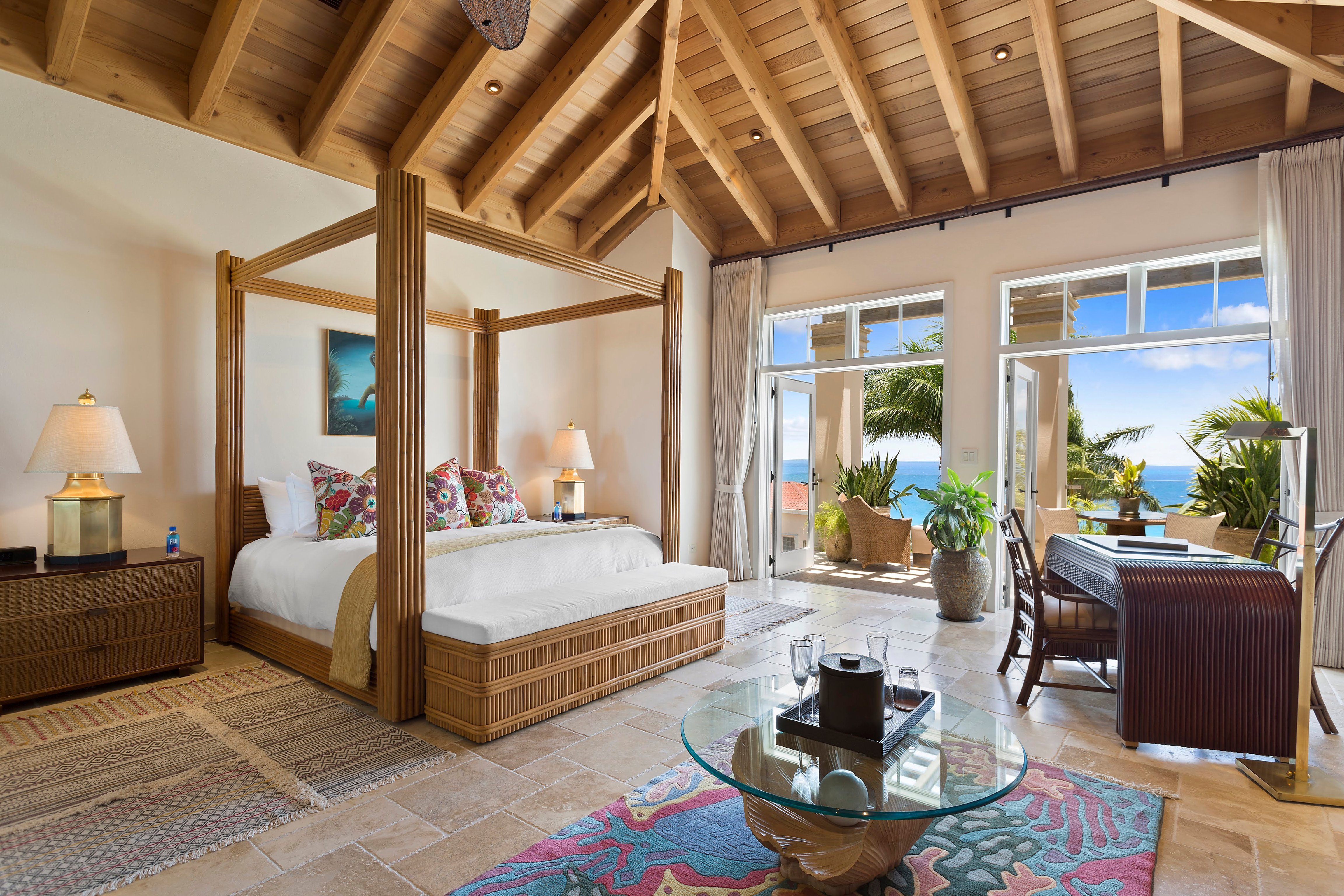 In addition to the art, Quintessence offers guests an equally unique stay. The nine luxury suites in the main house are each distinctly decorated with authentic artwork and named after notable Haitian artists. Each room features four-poster King beds with Hästens mattresses and Frette linens, 24/7 butler service, and unobstructed views of Long Bay Beach and the ocean. The Joseph Penthouse (which is a whopping 1494 square feet) features panoramic ocean views, a spacious terrace with plenty of seating options, a big living room and dining room, and a marble bathroom. Additionally, there are three suites (called The Quinn Suites) not located in the main house that come at lower price points, while still offering the same resort amenities and 24-hour service. The resort also features the Polo Lounge, a stylish space furnished with Ralph Lauren pieces, perfect for enjoying drinks in a more private setting as well as a secluded Meeting Room filled with an impressive collection of first-edition books.
