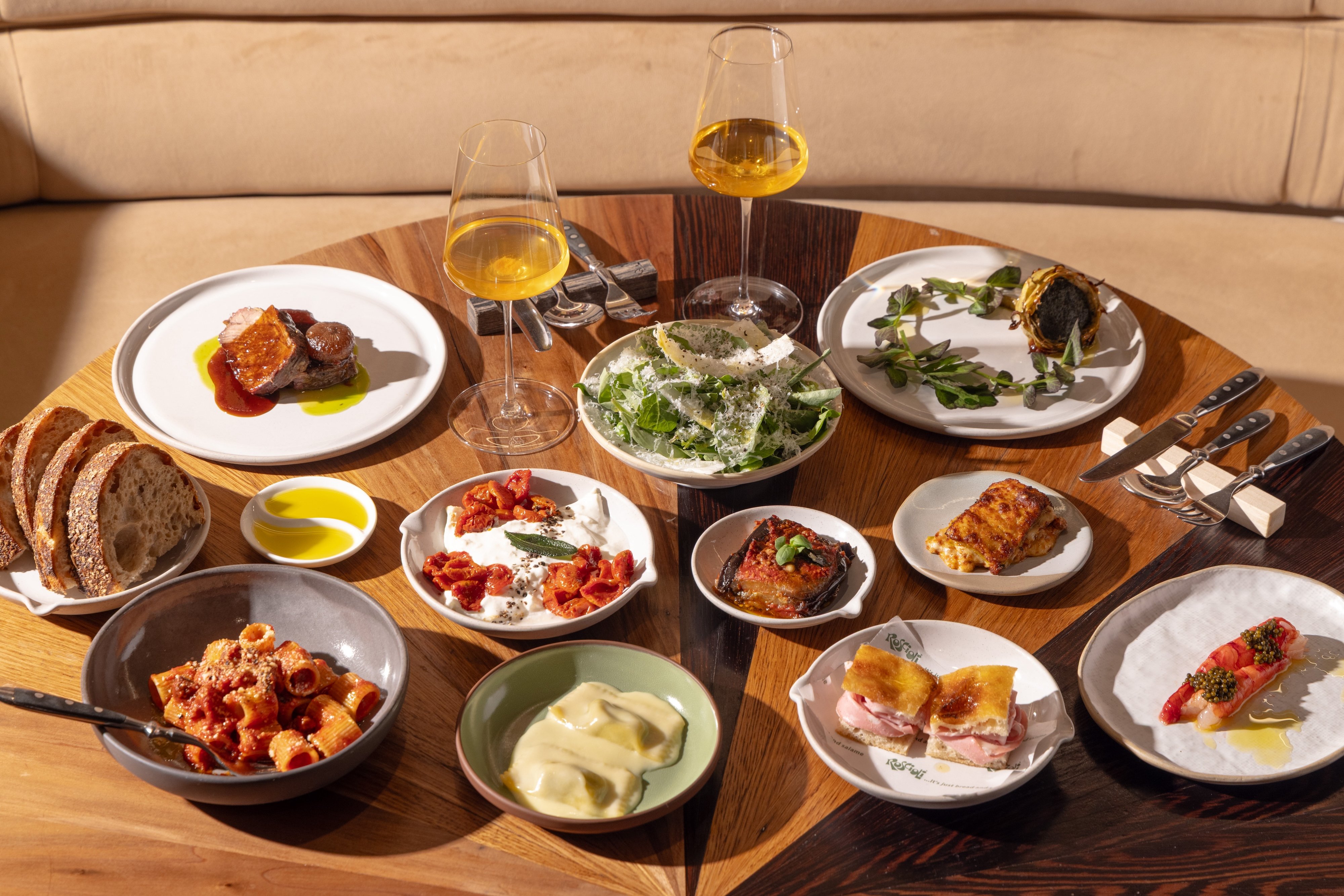 The à la carte menu at the Alimentari reinterprets Roman comforts through a cosmopolitan New York lens. Small plates like Burro e Alici pair anchovies from Cetara and the Cantabrian Sea with three butters–one from Saint-Malo, another from Japan, and the third from Italy. Crisp Zucchini alla Scapece Burrata, and the golden Carciofi Fritti nod to traditional aperitivi.