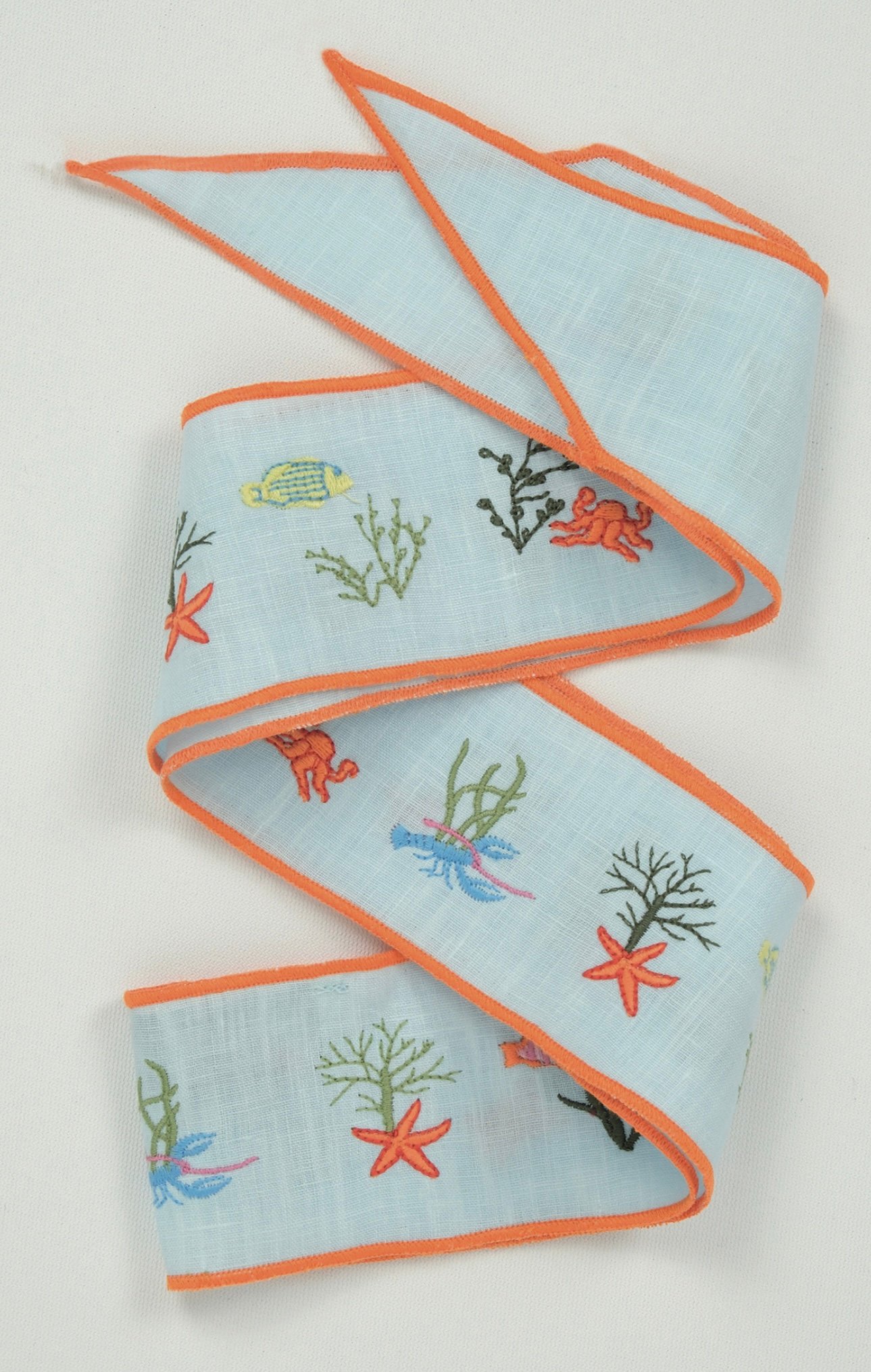 At the Rosewood, we previously sold a hat that benefitted the Bermuda National Trust. This hat for World Oceans Day with the embroidered sea life ribbons sewn by Fanm Mon will donate 20% of the proceeds to the Living Reefs Foundation—an organization founded in 2014 to invest in protecting Bermuda’s Castle Harbour's coral reefs and the marine life they support. These ribbons stand out because they’re sewn by Fanm Mon, a local artisan who focuses on women's dress wear as an ode to our Haitian heritage. I designed the sea life caricatures, and she sewed them.”