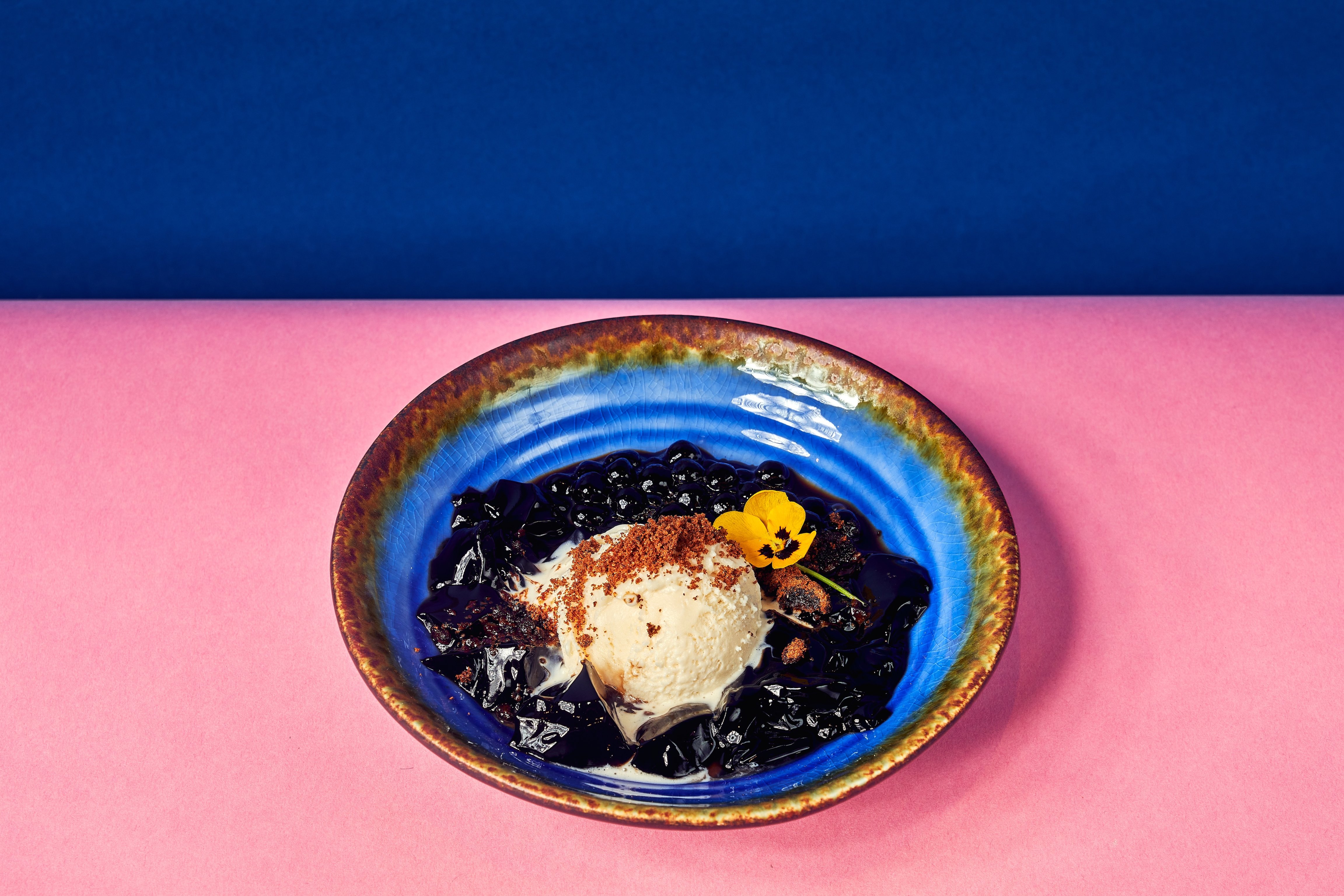 For dessert, enjoy Kluay Ping I-Tim, a grilled banana with coconut milk caramel and butterfly pea gelato, or Chao-Guay I-Tim Nom, a refreshing glass jelly with boba and brown sugar.